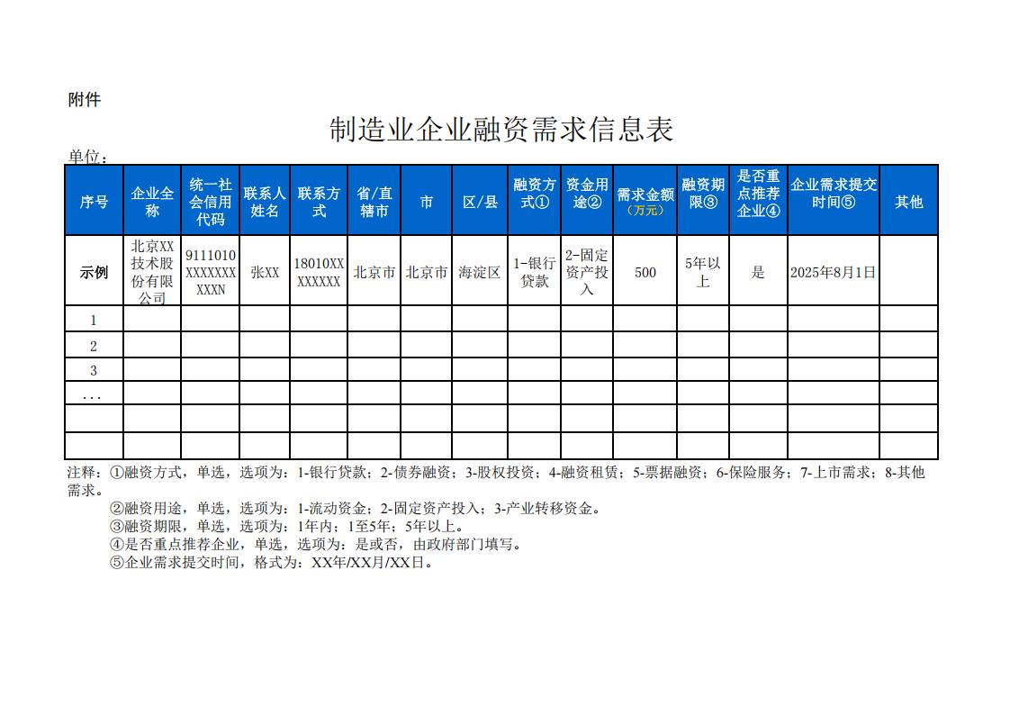 (二)因敏感信息等原因不便線上填報的,可由省級工業和信息化主管部門、相關行業協會匯總本地區、本行業制造業企業融資需求信息表(見附件),以安全保密方式報送工業和信息化部(財務司)。