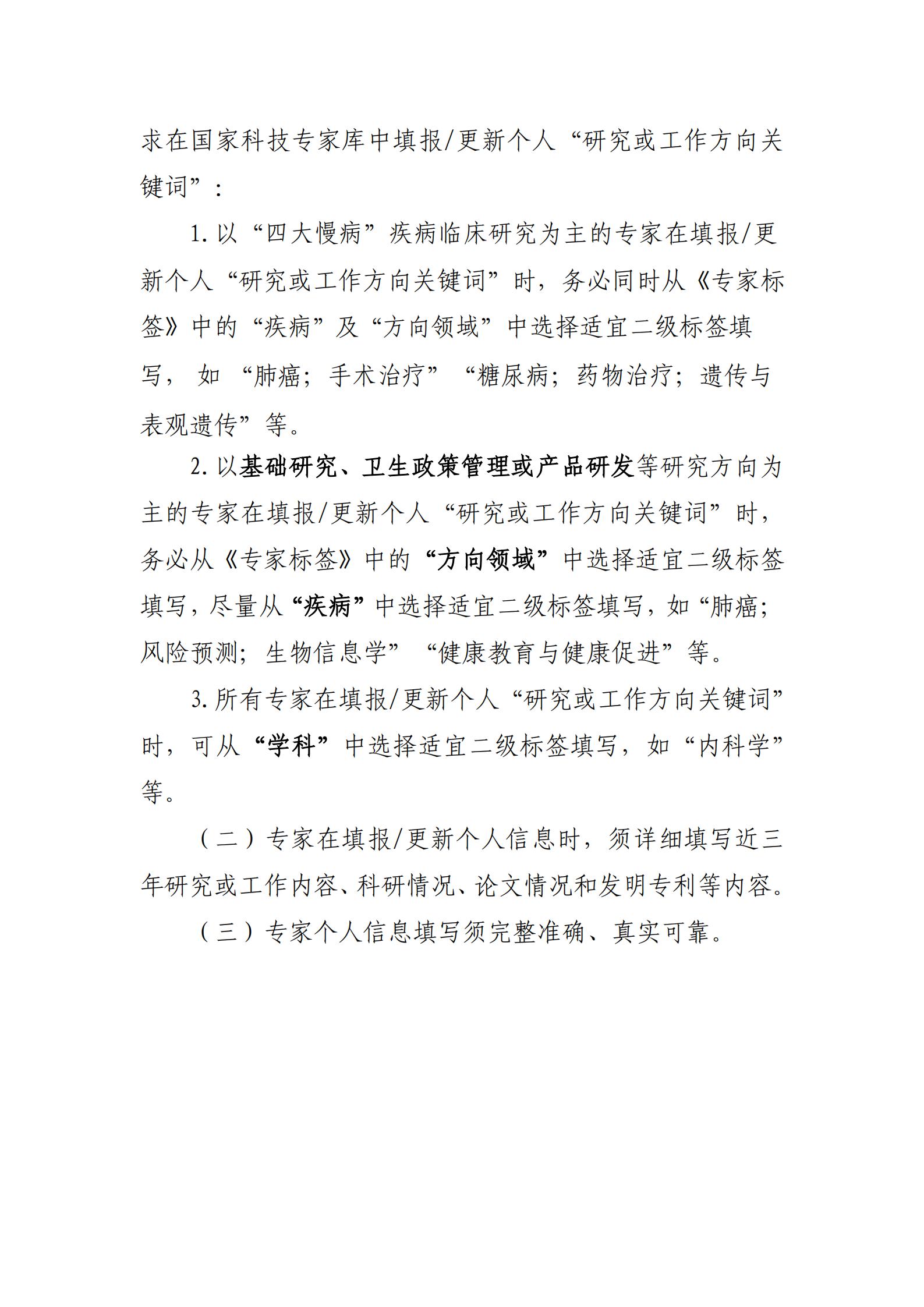 3.已在四大慢病重大專項前期征集專家工作中入庫的專家,需結合自身工作調整及個人信息變更情況,及時登錄系統更新完善相關信息。