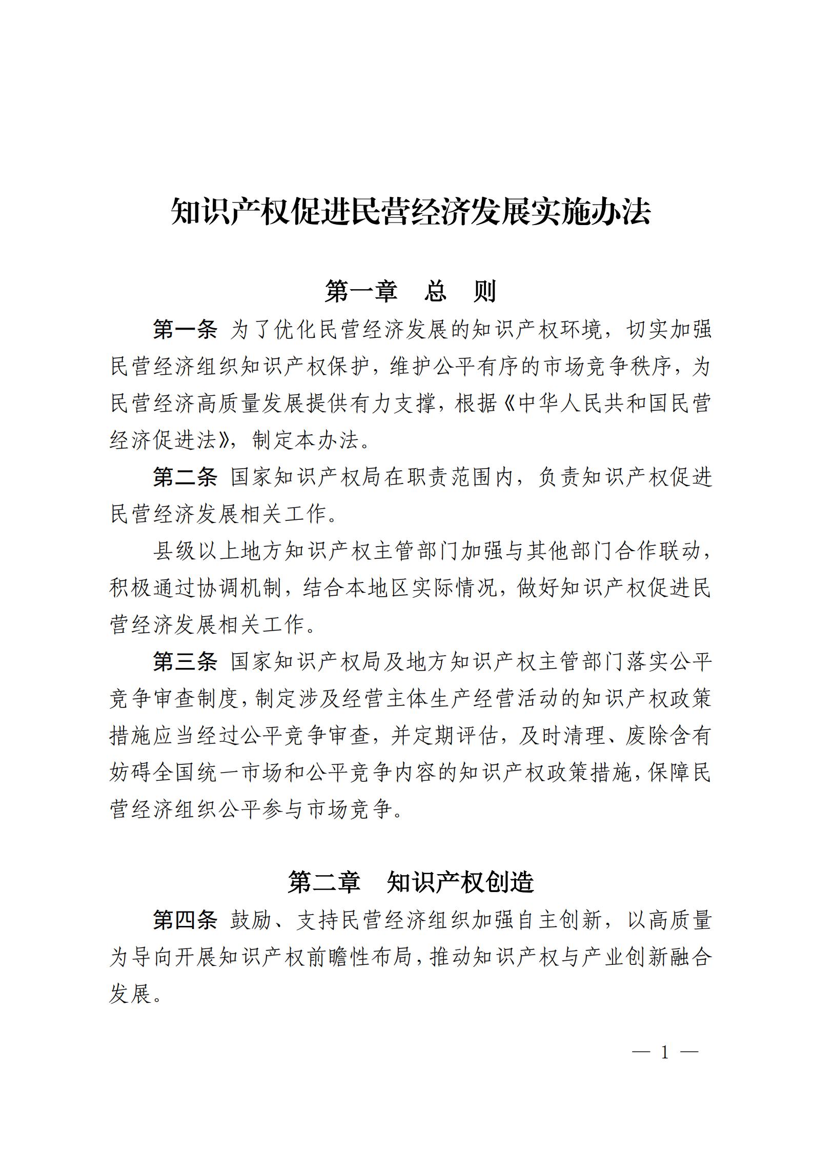 國家知識產權局關于印發《知識產權促進民營經濟發展實施辦法》的通知