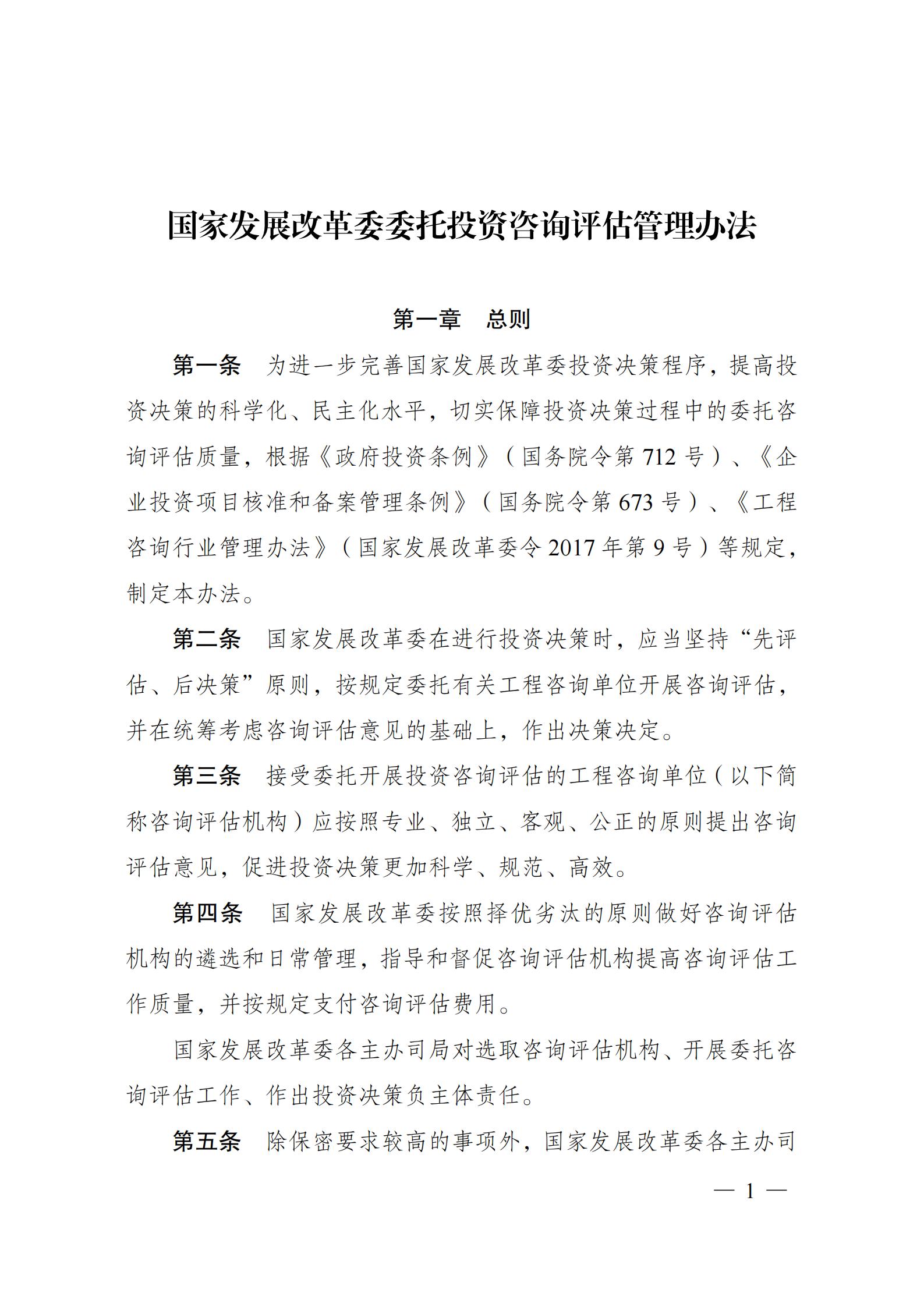 國家發展改革委關于修訂印發委托投資咨詢評估管理辦法的通知