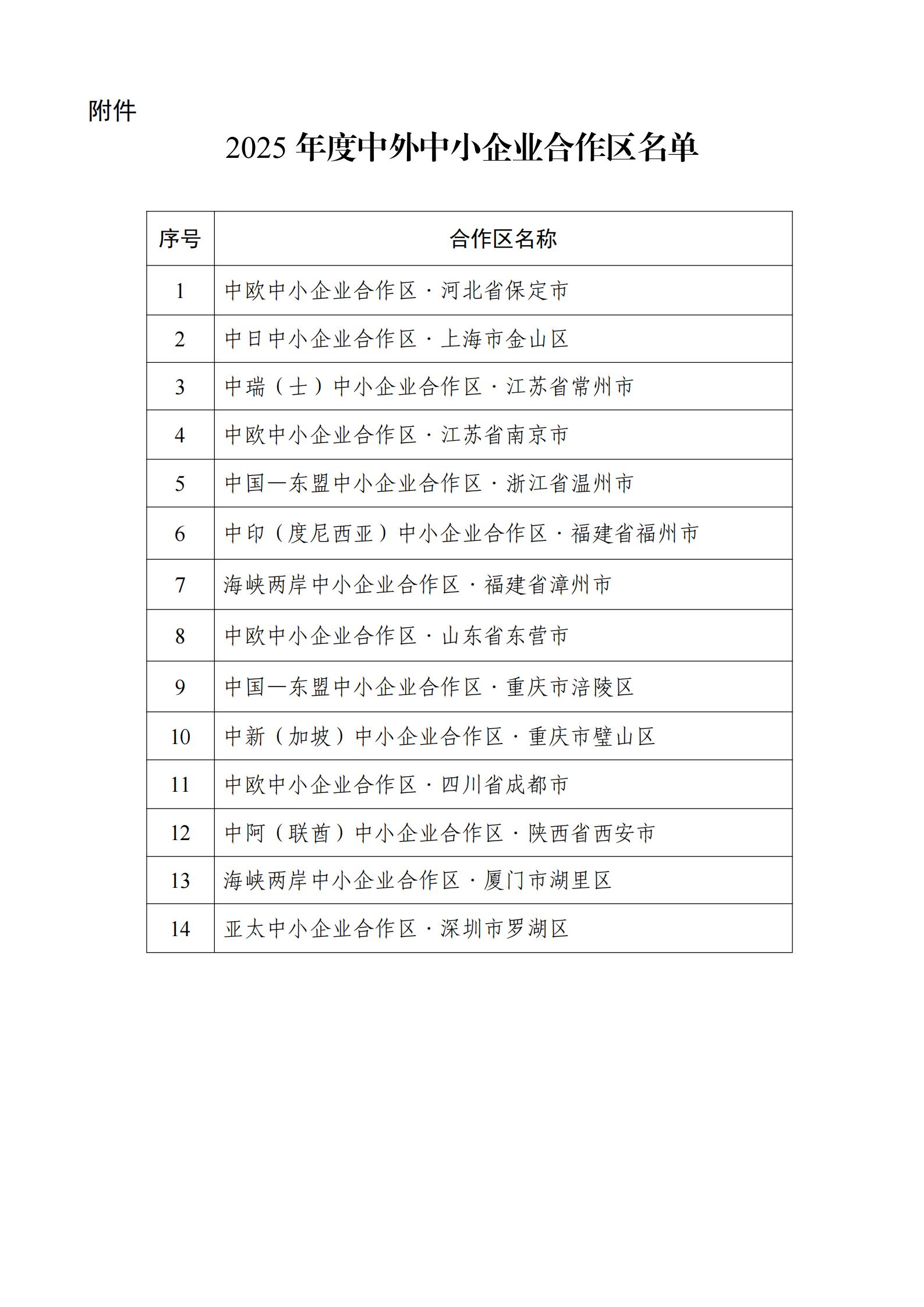 工業和信息化部關于公布2025年度中外中小企業合作區名單的通告