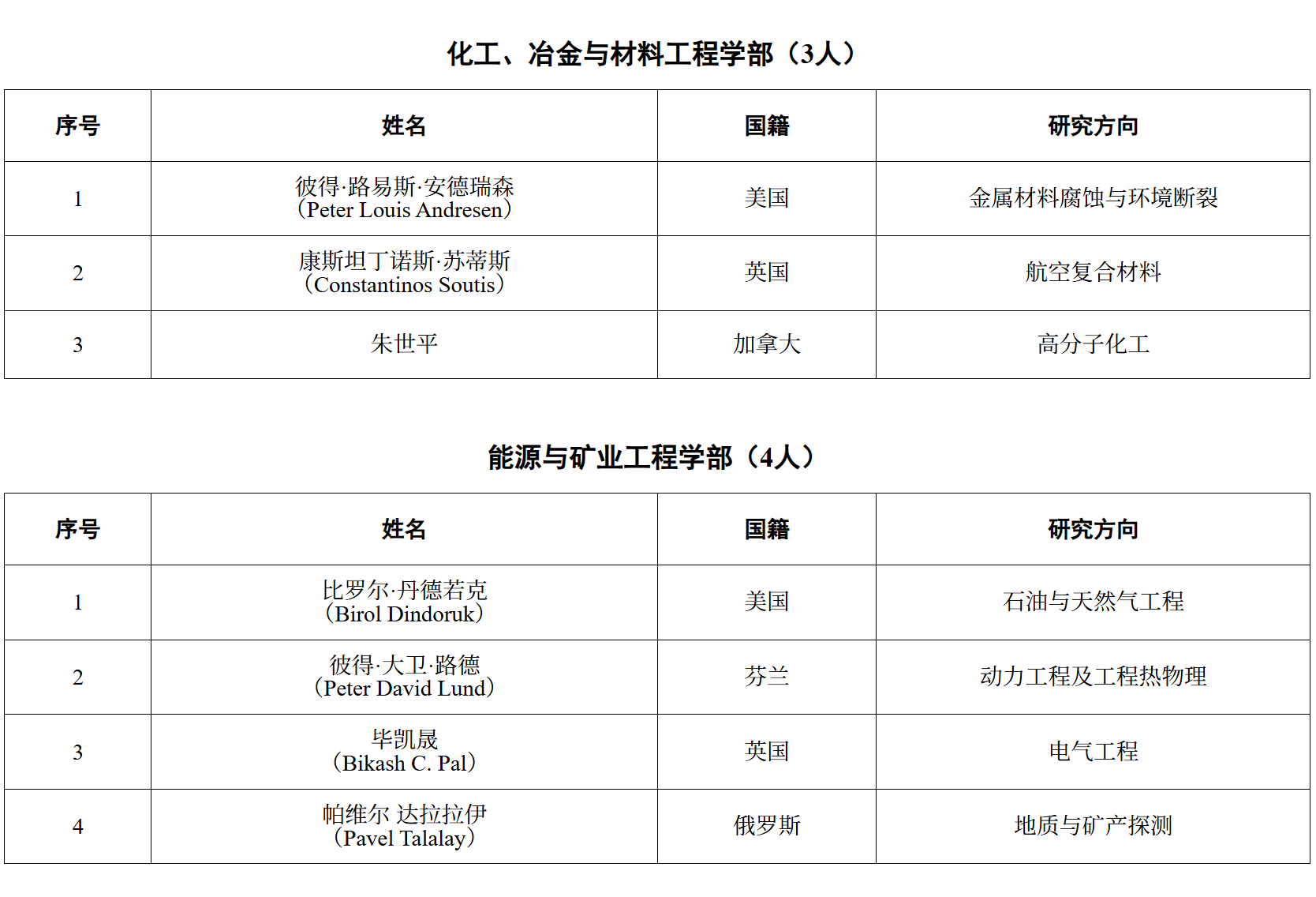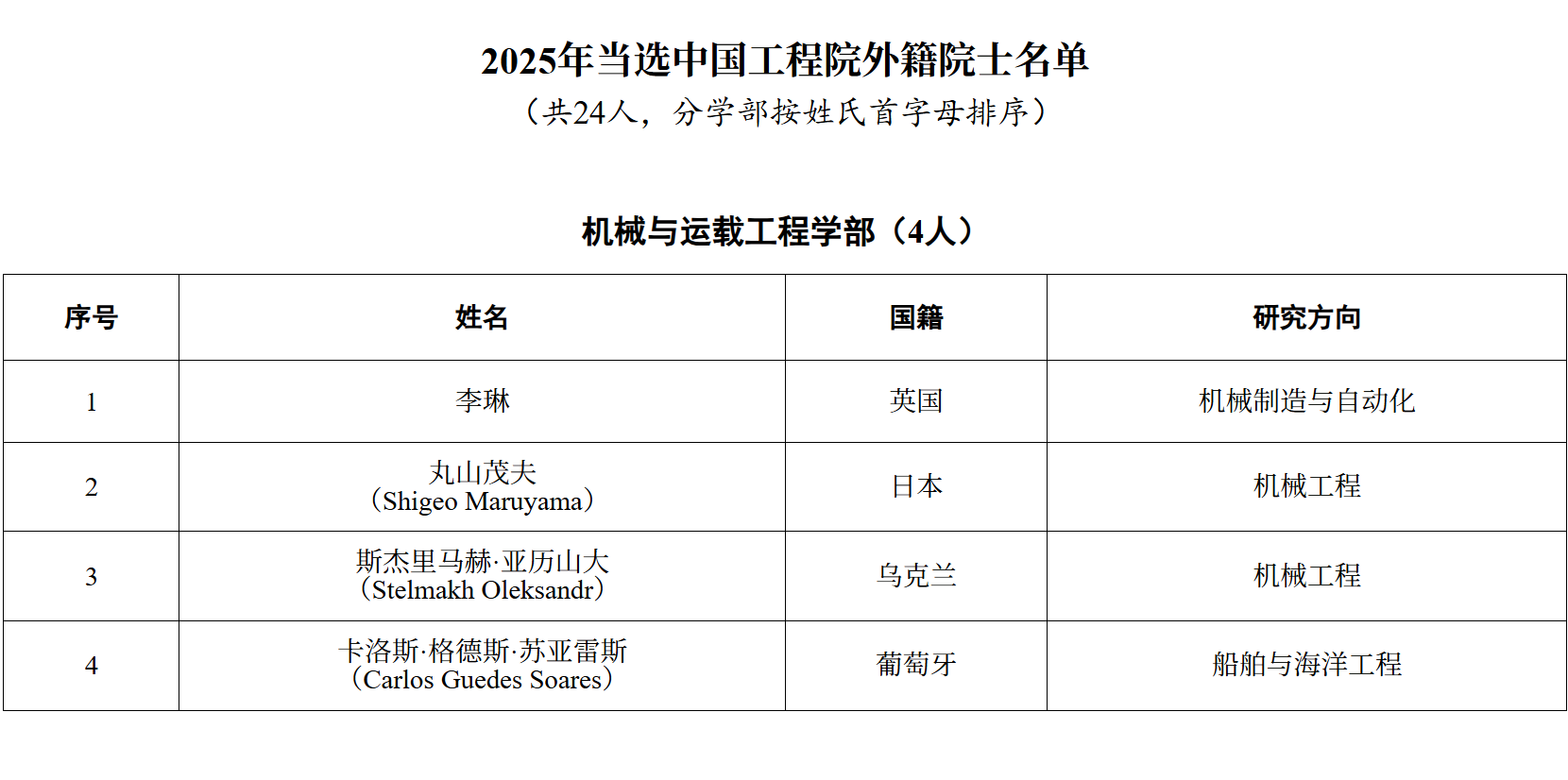 關于公布中國工程院2025年院士增選當選外籍院士名單的公告