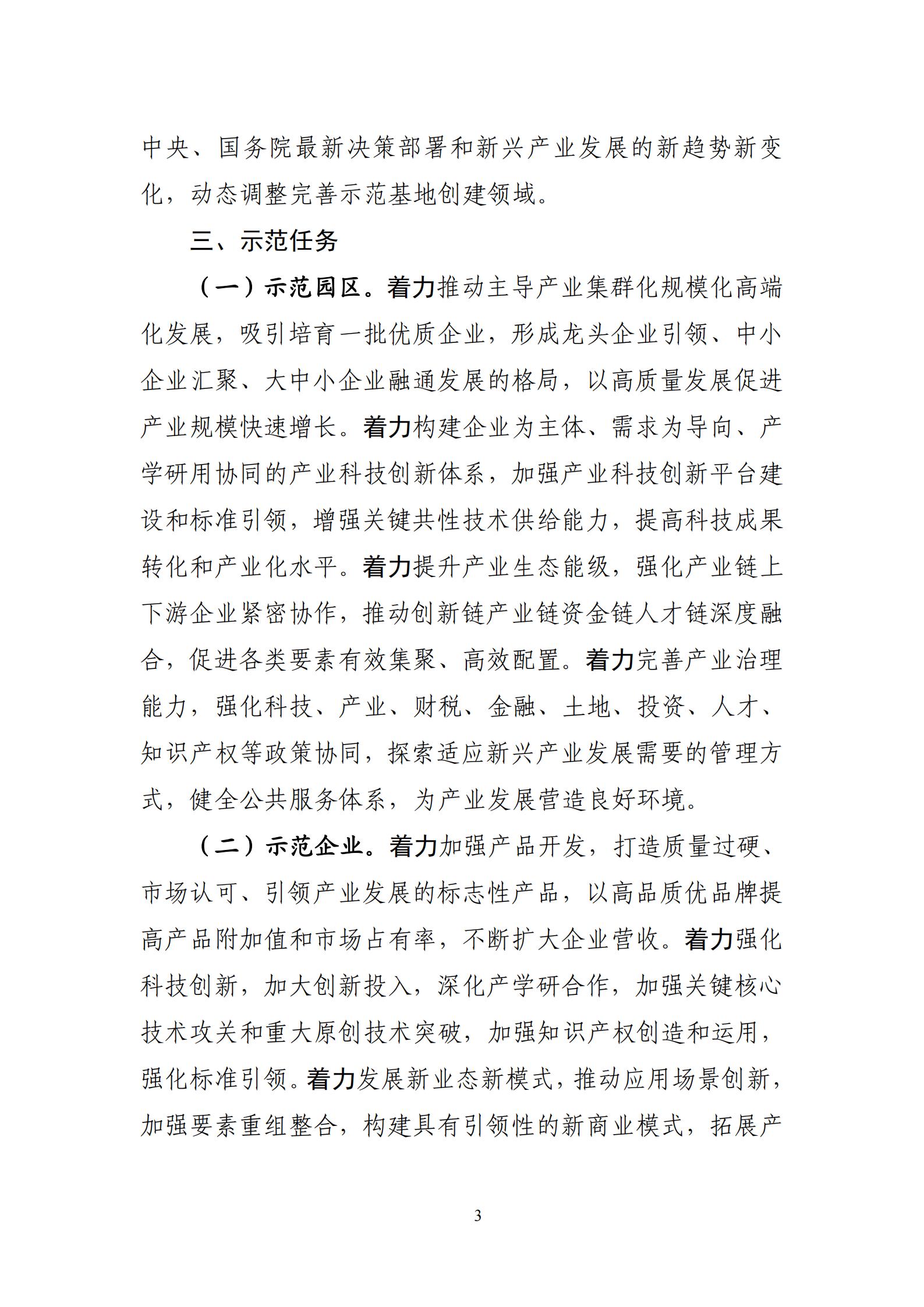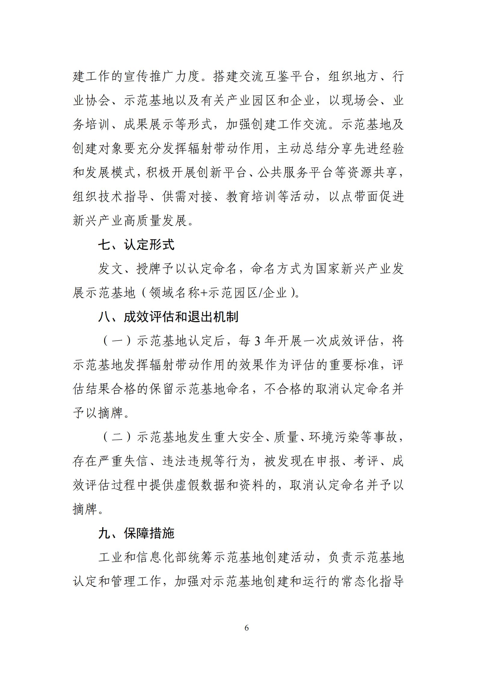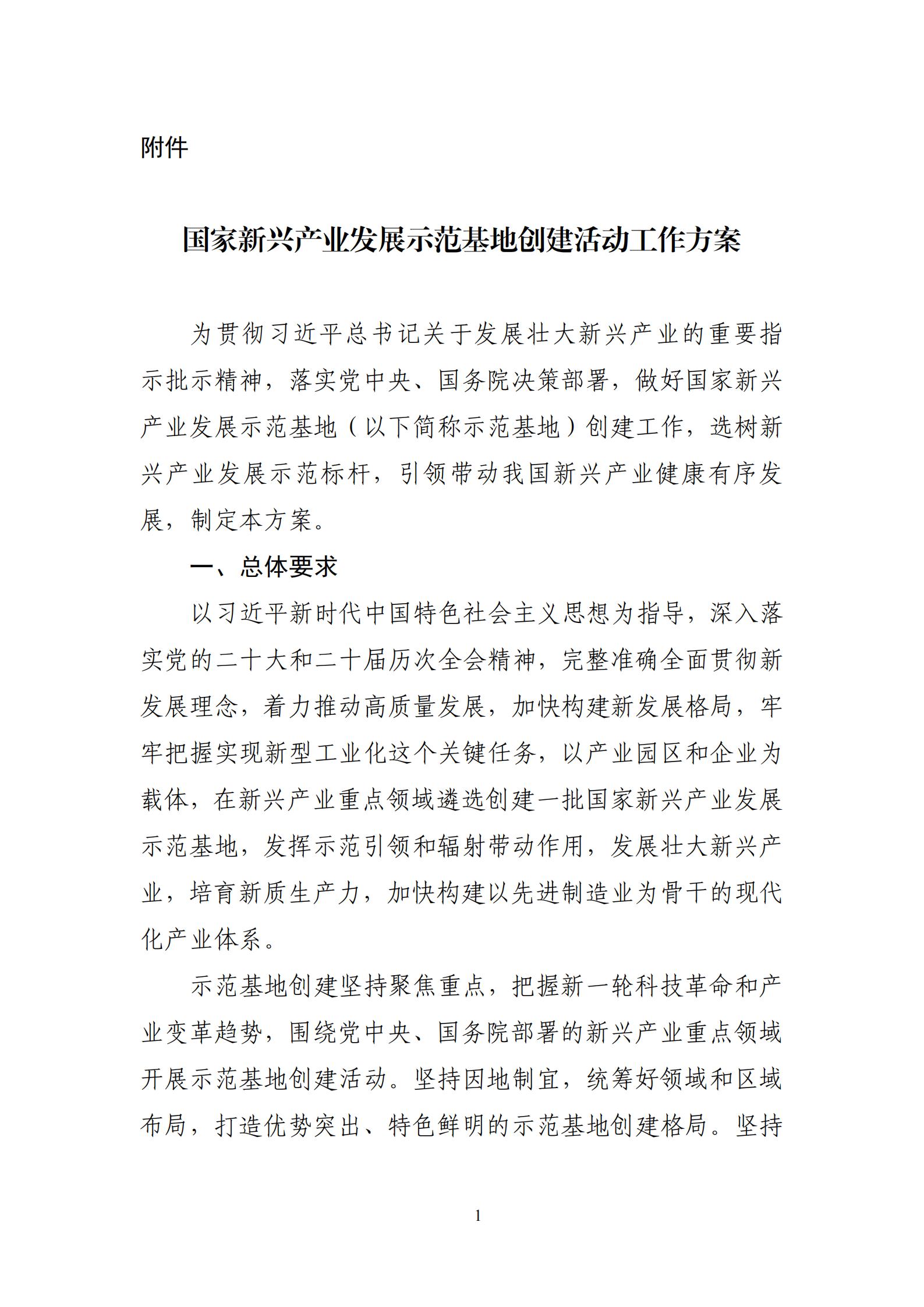 為貫徹落實黨中央、國務院關于發展壯大新興產業的決策部署,選樹新興產業發展示范標桿,引領帶動我國新興產業健康有序發展,工業和信息化部決定開展“國家新興產業發展示范基地”(以下簡稱示范基地)創建活動。請按照《國家新興產業發展示范基地創建活動工作方案》要求,組織做好本地區示范基地創建工作。