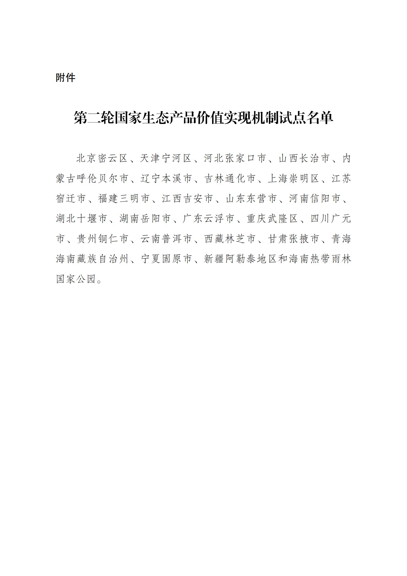 關于印發第二輪國家生態產品價值實現機制試點名單的通知
