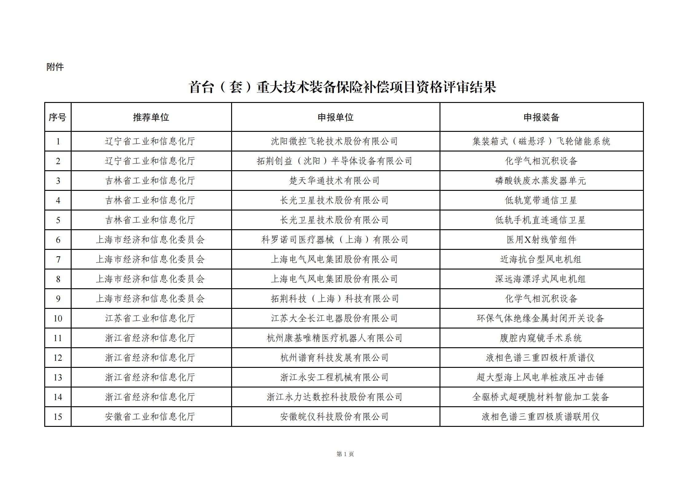 附件:首臺(套)重大技術裝備保險補償項目資格評審結果