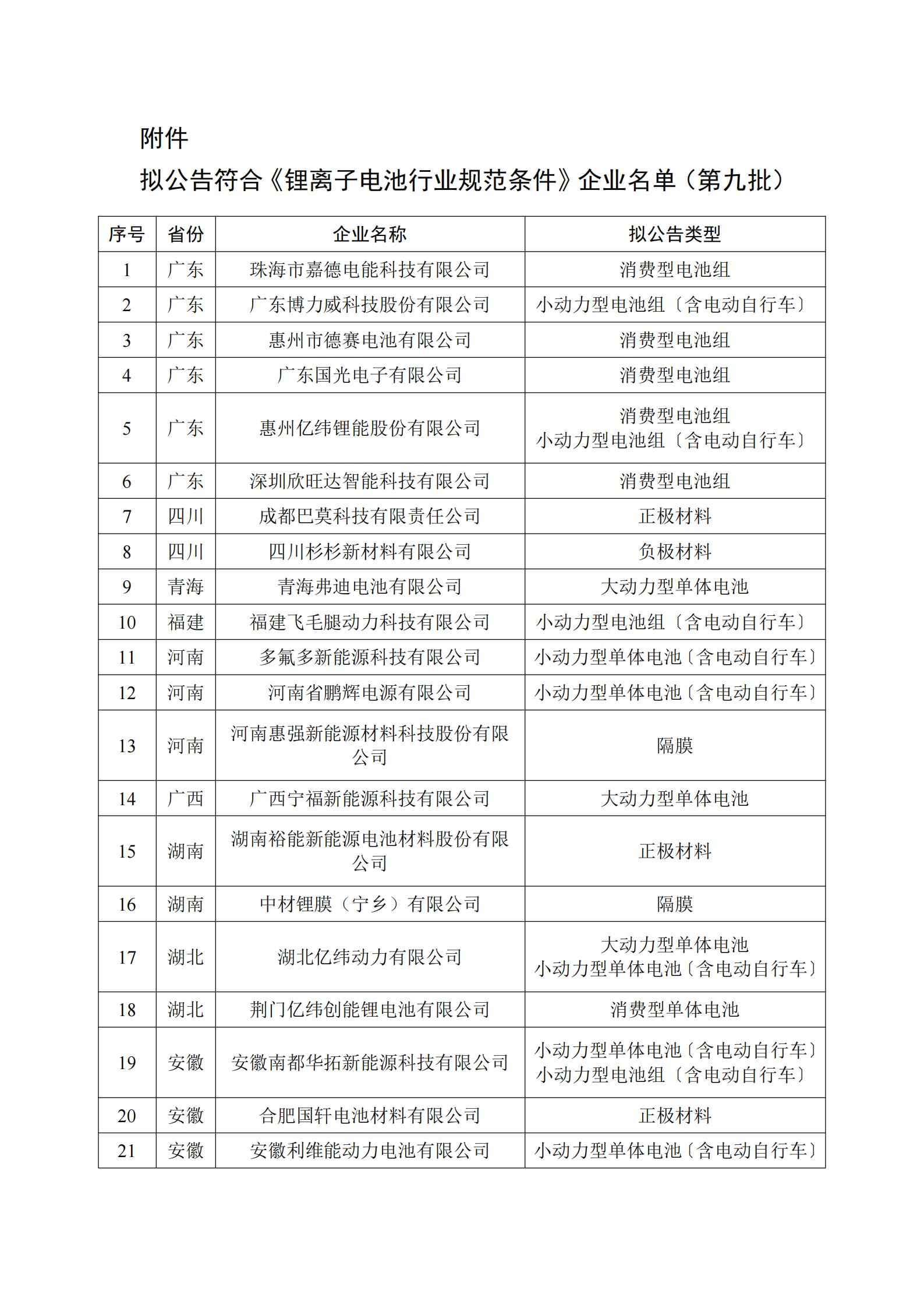 附件:擬公告符合《鋰離子電池行業規范條件》企業名單(第九批)