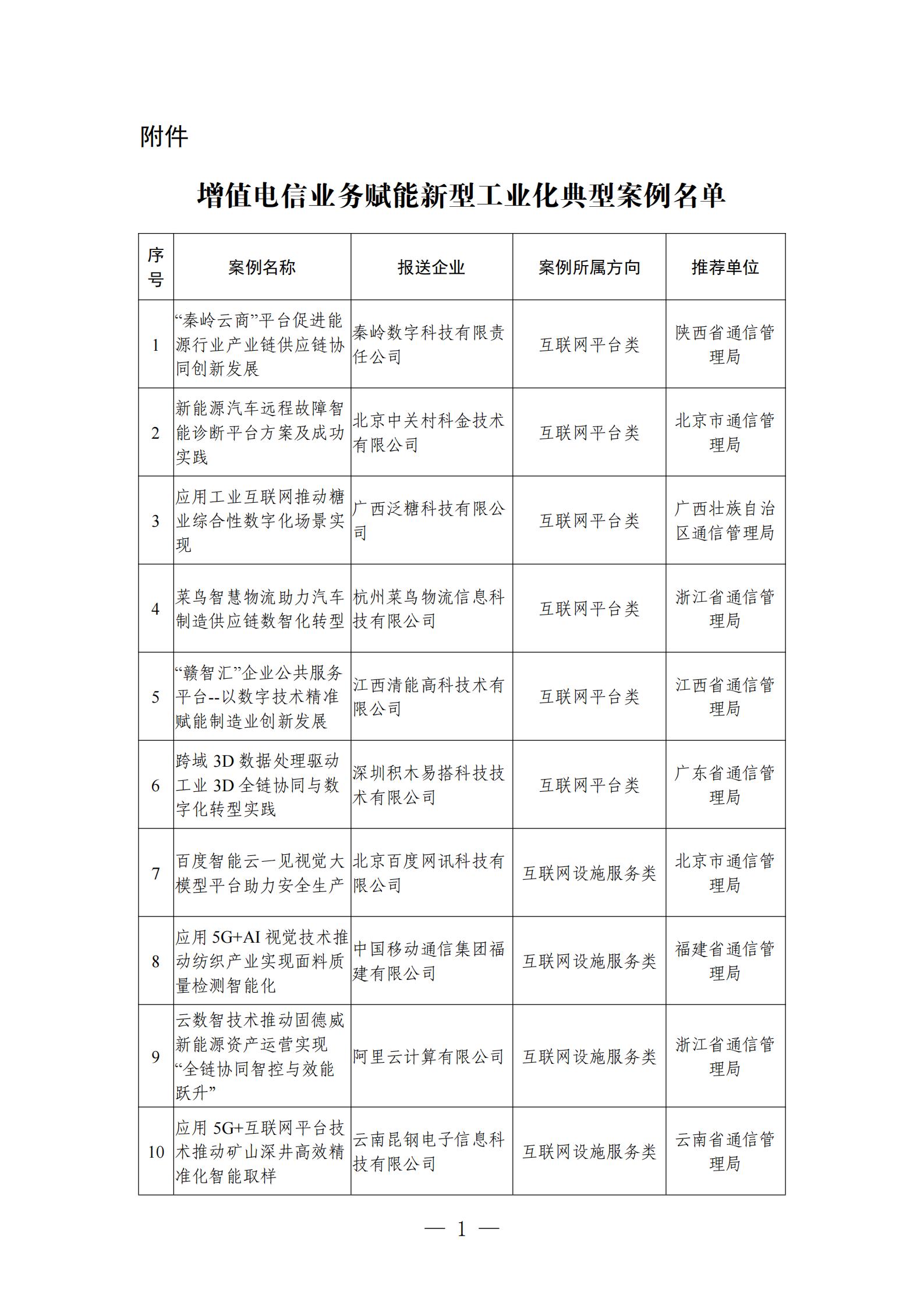 附件:增值電信業(yè)務(wù)賦能新型工業(yè)化典型案例名單