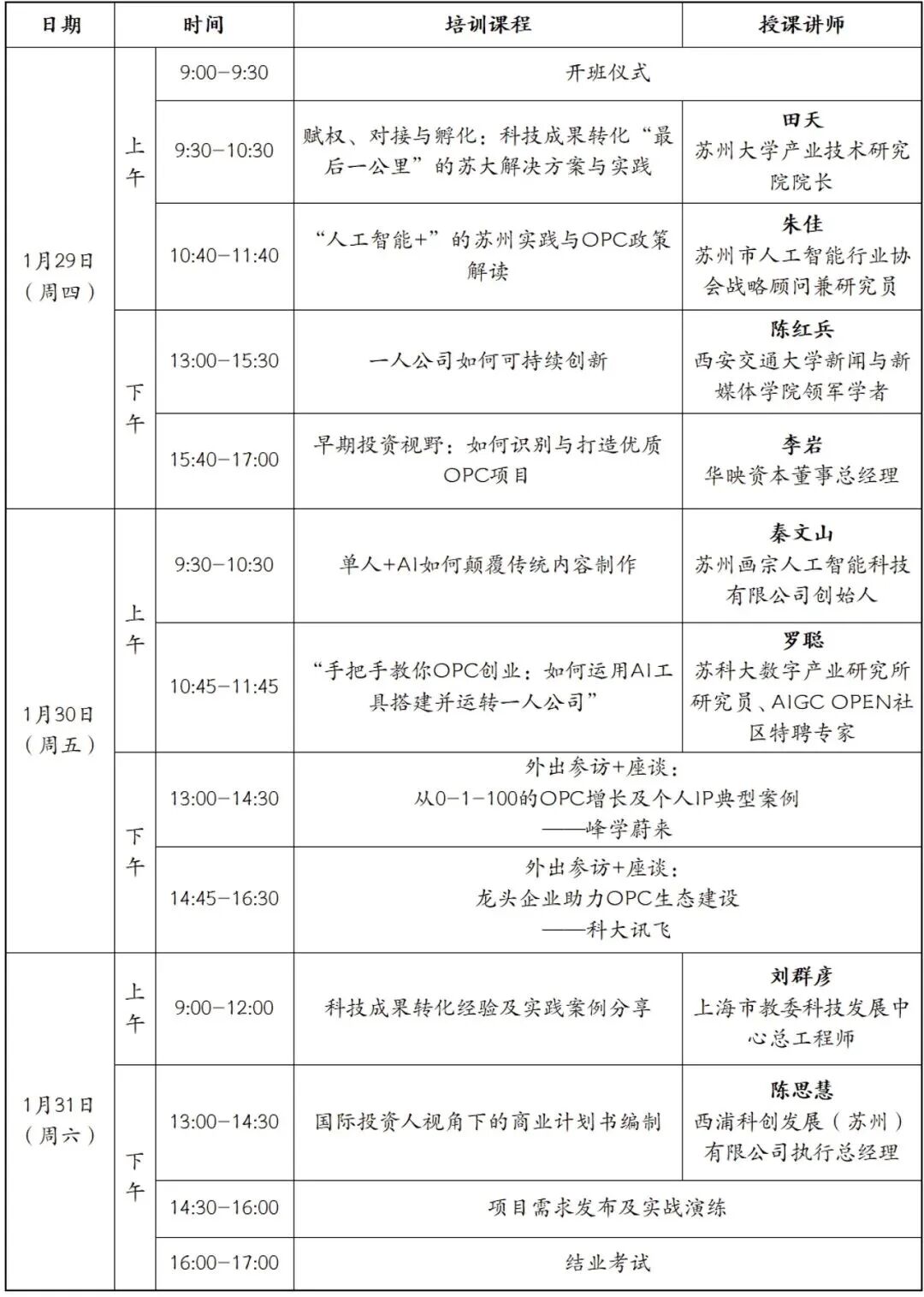 ? ? ? ?課程聚焦理論筑基,分為前沿技術趨勢分析、相關政策解讀、AI工具運用、早期項目投資與OPC生態建設五大關鍵維度,幫助學員構建系統、全面的OPC領域認知框架。
