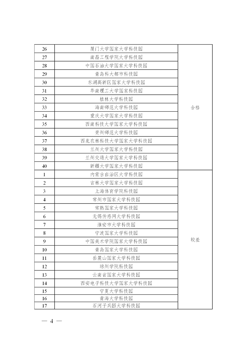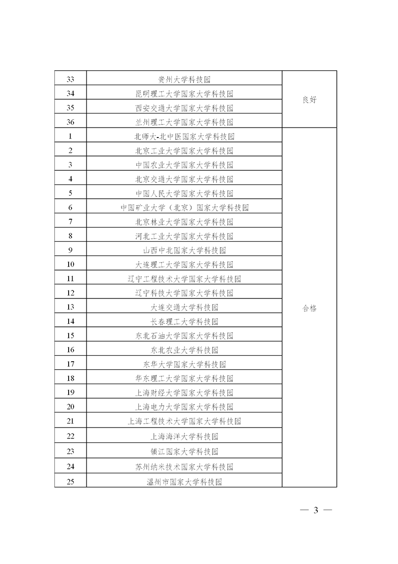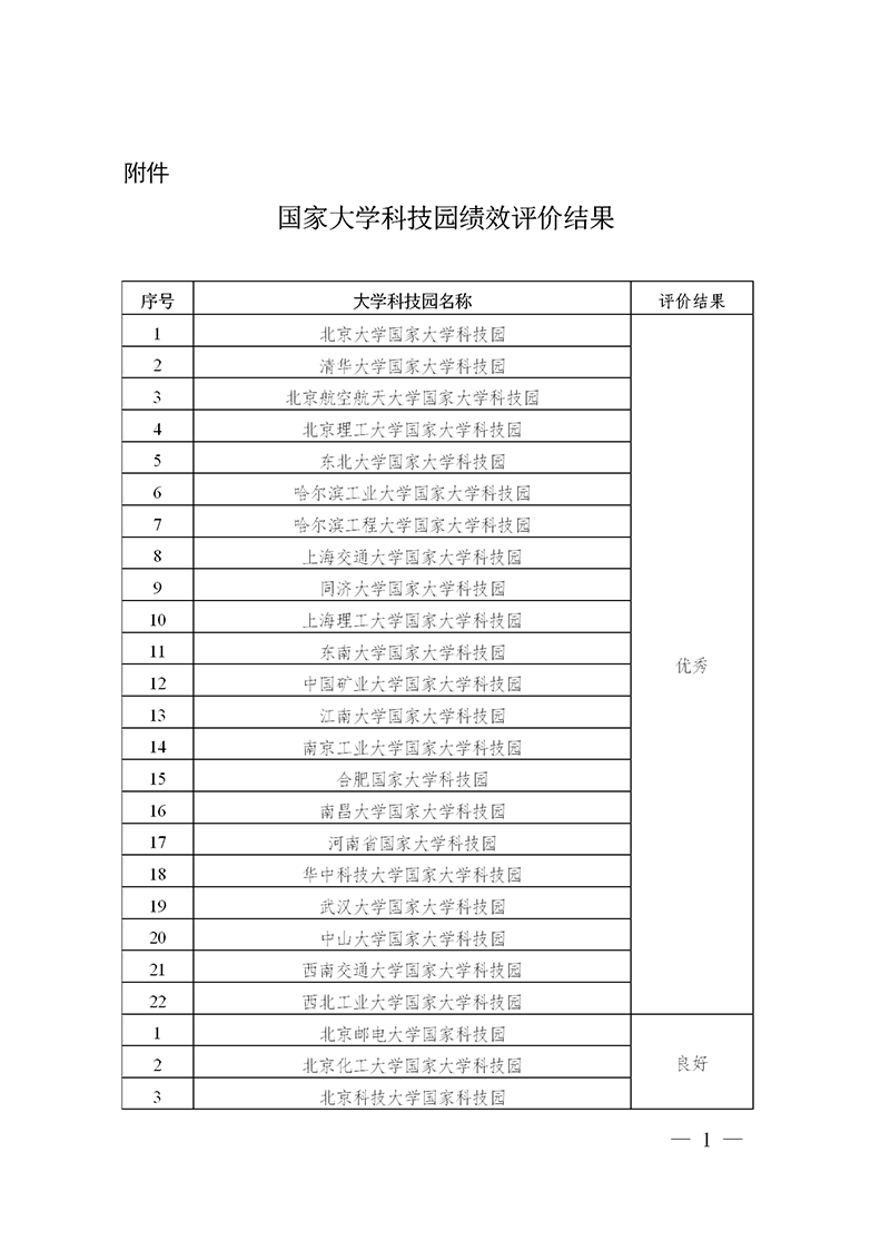科技部 教育部關于發布國家大學科技園績效評價結果的通知