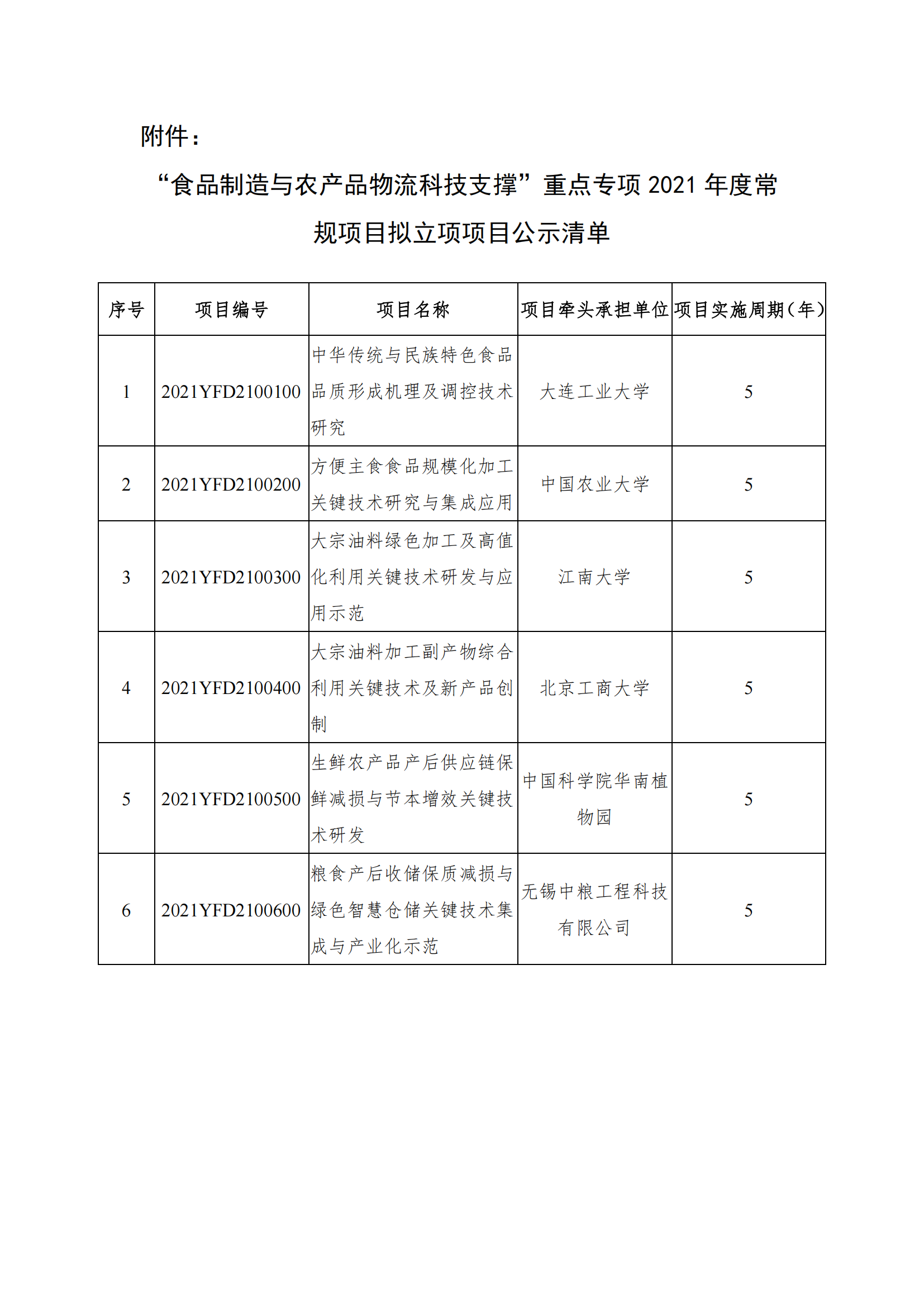 ? ? ?附件:國家重點研發計劃“食品制造與農產品物流科技支撐”重點專項 2021年度常規項目擬立項項目公示清單