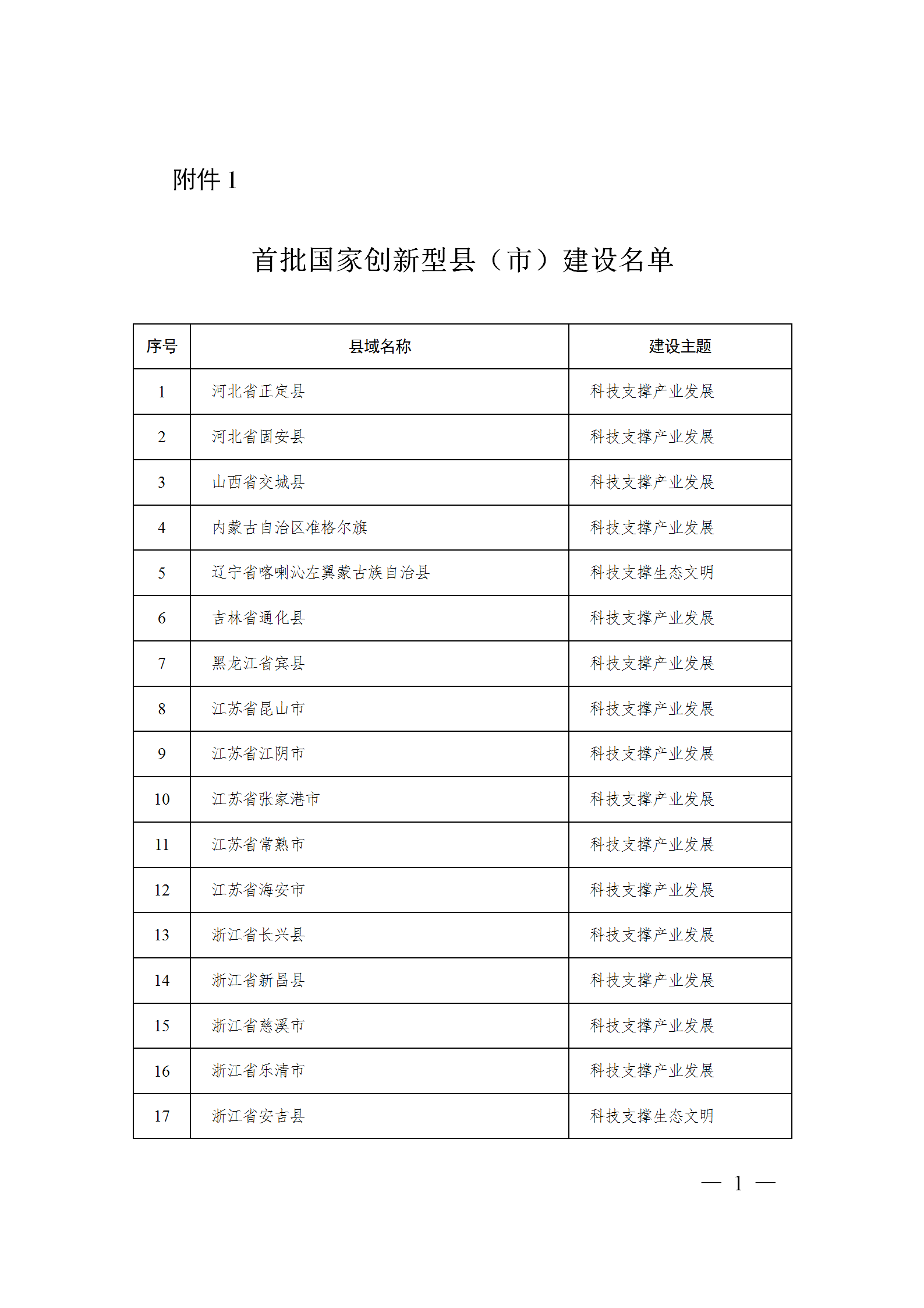 科技部2018年12月批復建設的首批52個創新型縣(市)(附件1)。