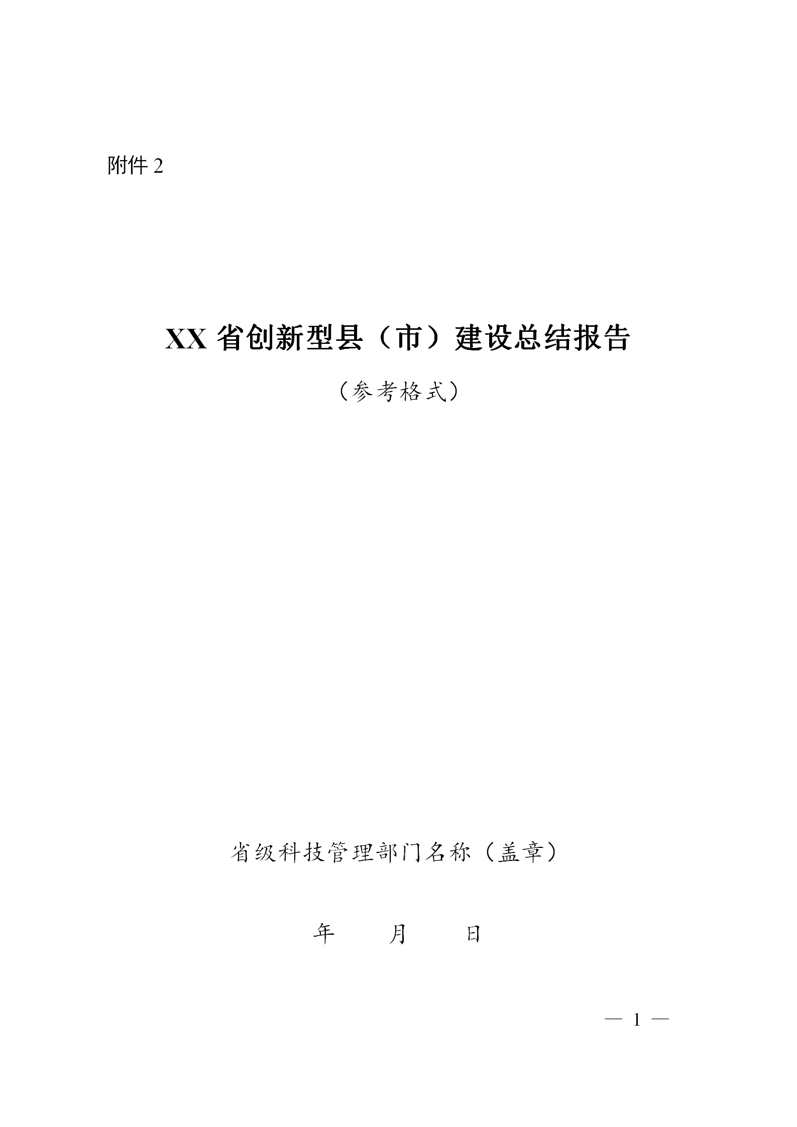 1. 報送總結。各省級科技管理部門撰寫創新型縣(市)建設總結報告(參考格式見附件2)并加蓋省級科技管理部門印章。各創新型縣(市)撰寫總結報告(參考格式見附件3),由縣(市)人民政府和省級科技主管部門審核并蓋章。