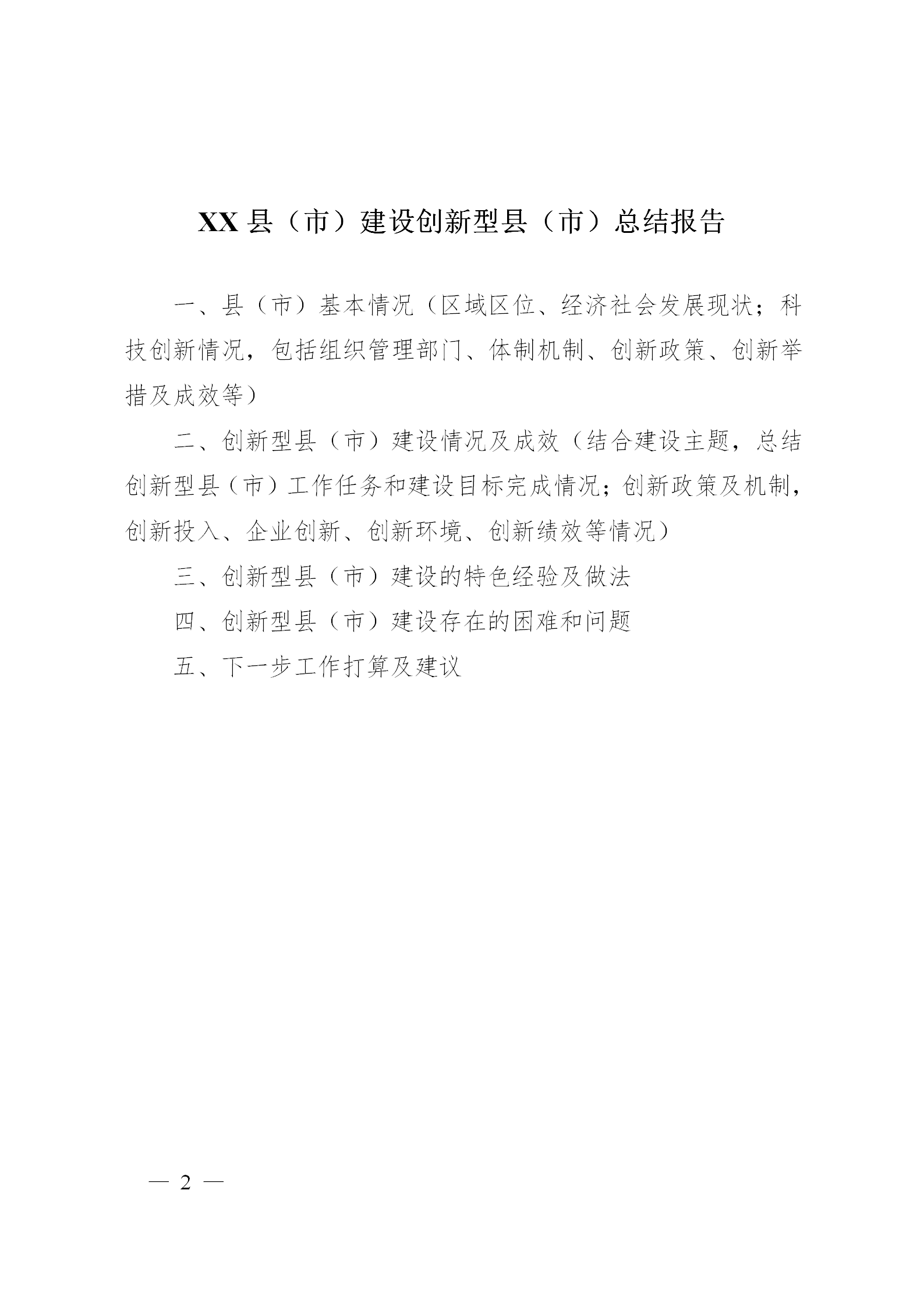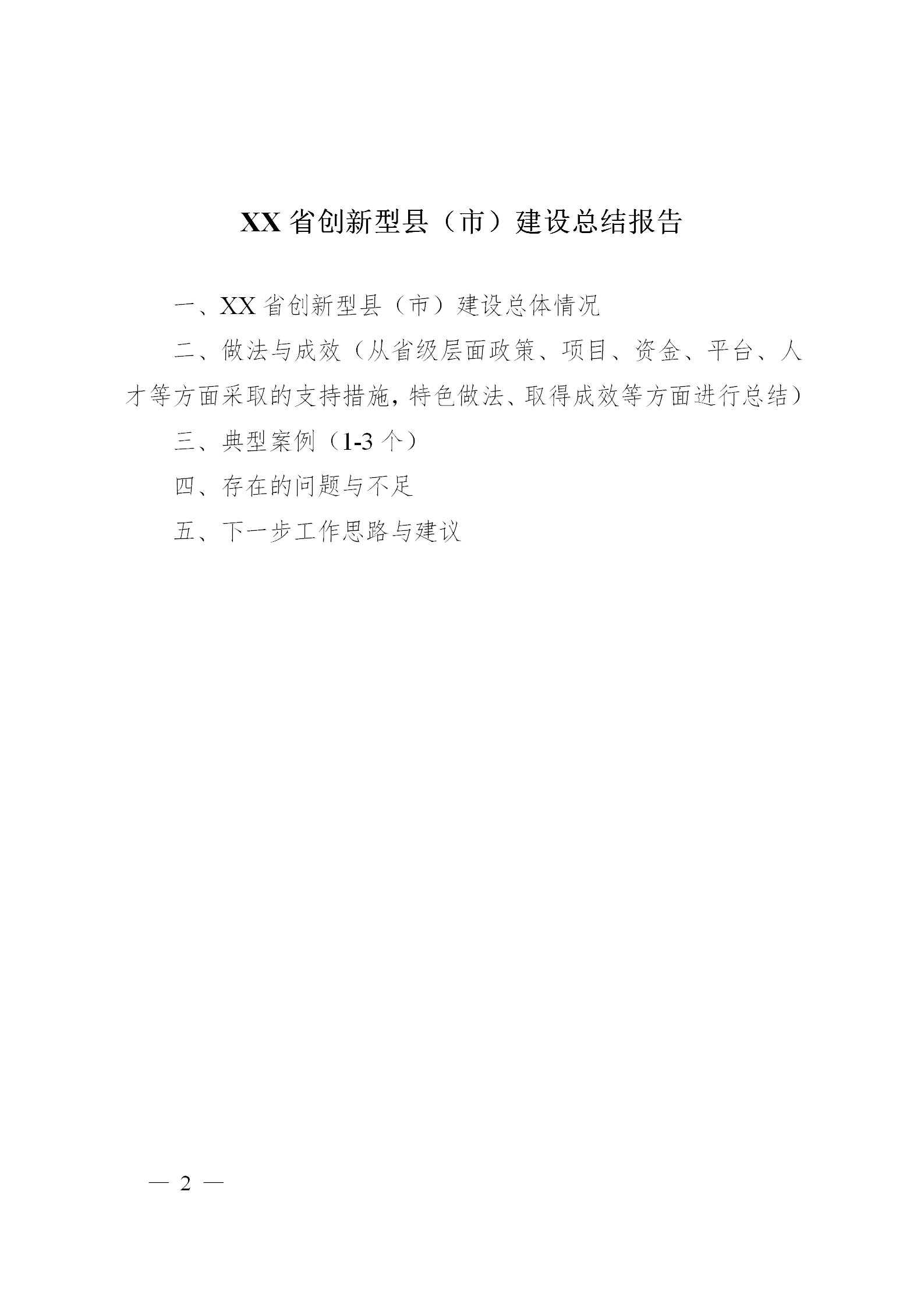 1. 請各地方科技管理部門于2022年4月10日前將《XX省創新型縣(市)建設總結報告》(3000字以內,一式3份)、《XX縣(市)建設創新型縣(市)總結報告》(5000字以內,一式3份)報送中國農村技術開發中心,同時將電子版發送至crtdc_dfc@126.com。