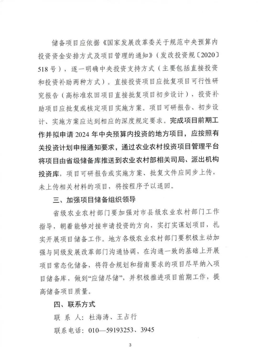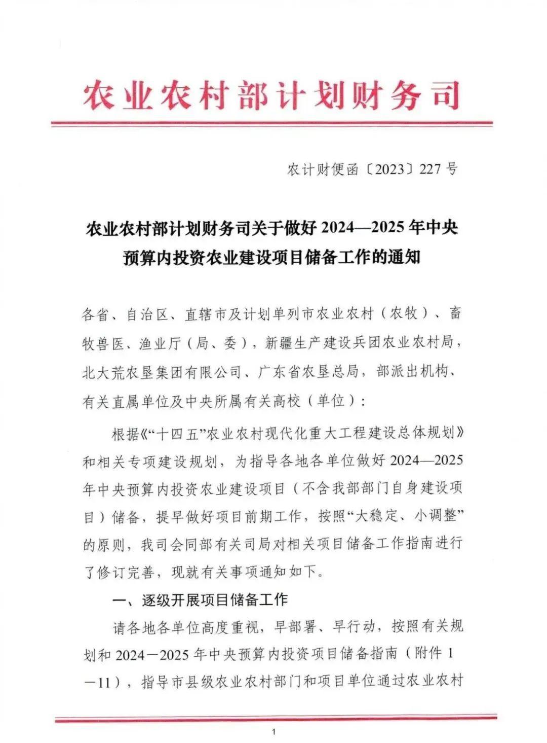 農業部|關于做好2024-2025年中央預算內投資農業建設項目儲備工作的通知(附11類項目指南)