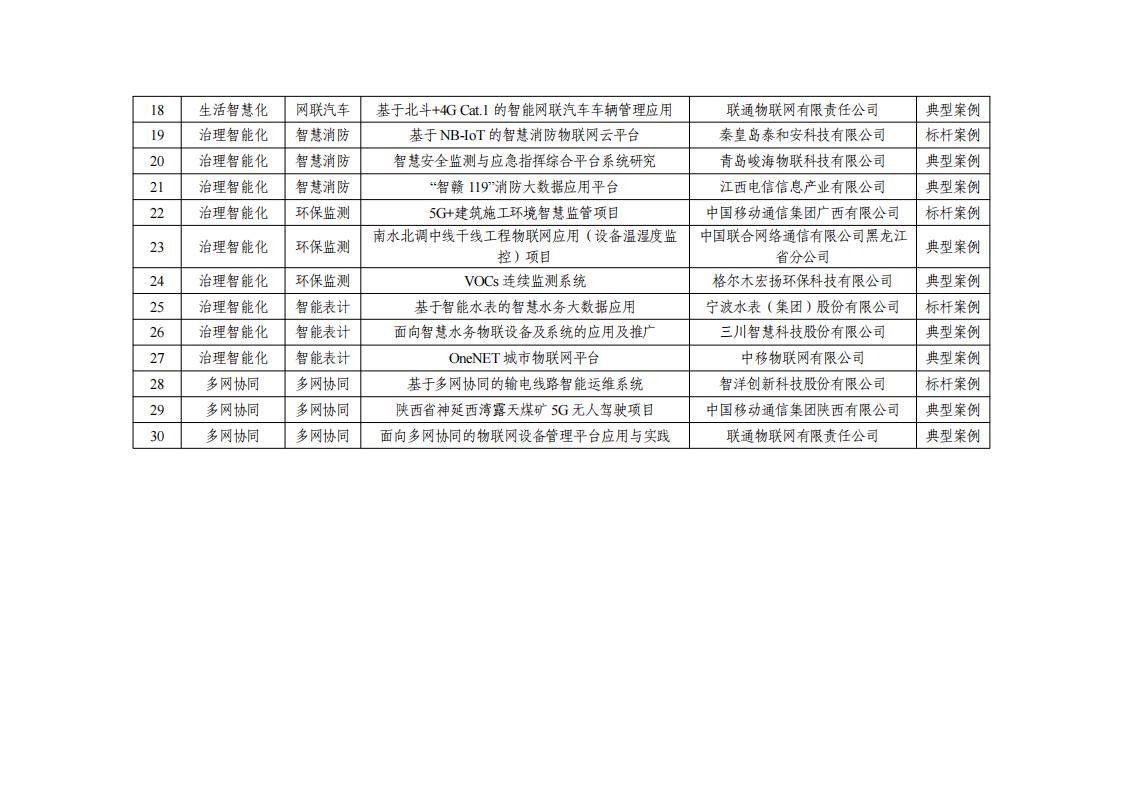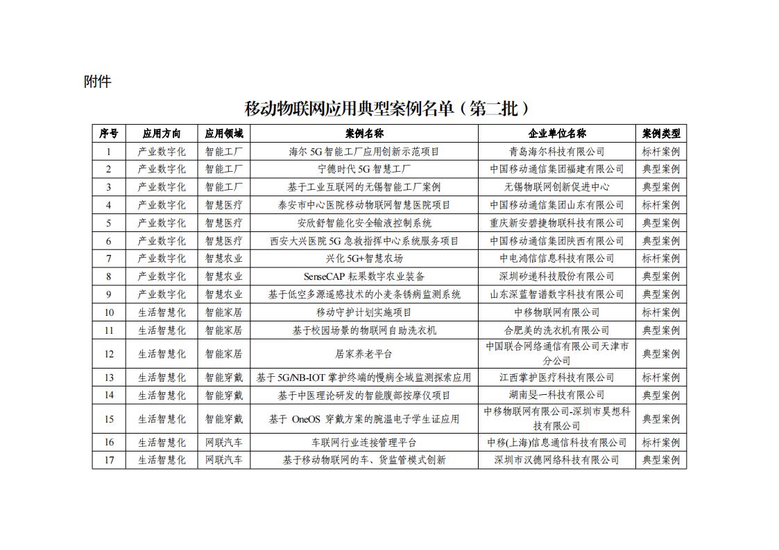 附件:移動物聯(lián)網(wǎng)應(yīng)用典型案例名單(第二批)