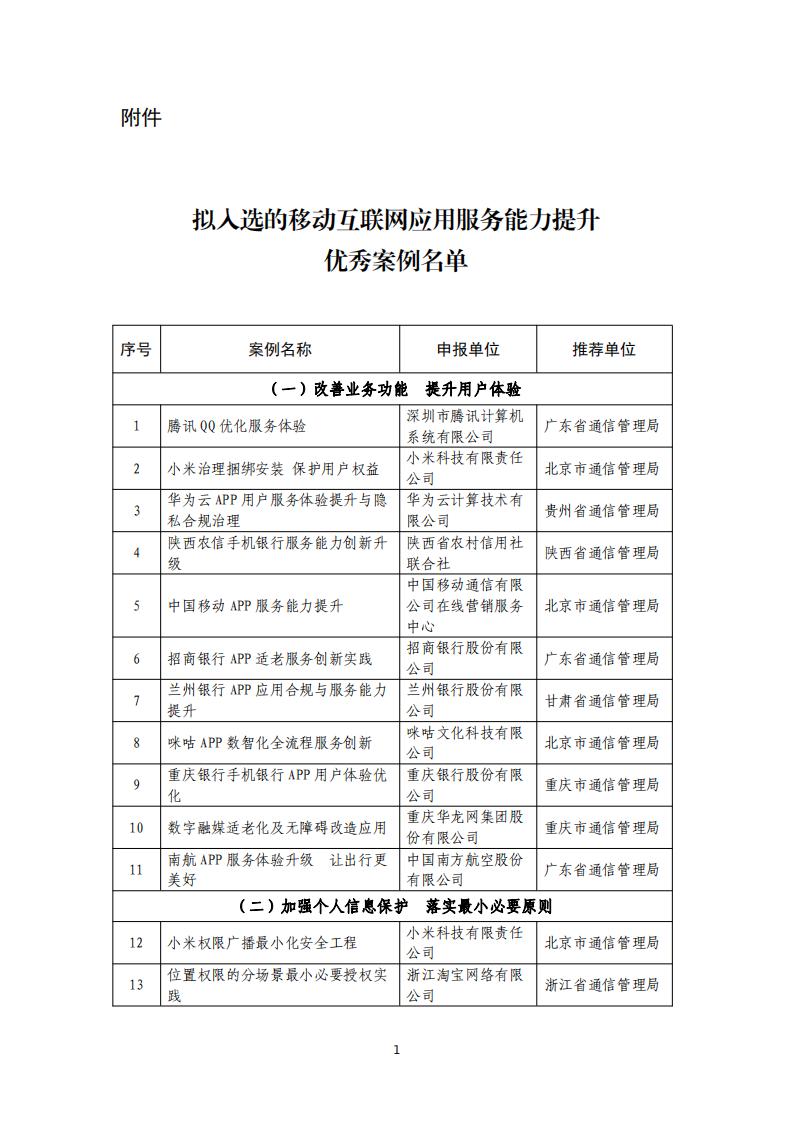 關(guān)于移動互聯(lián)網(wǎng)應(yīng)用服務(wù)能力提升優(yōu)秀案例名單的公示