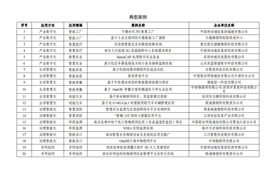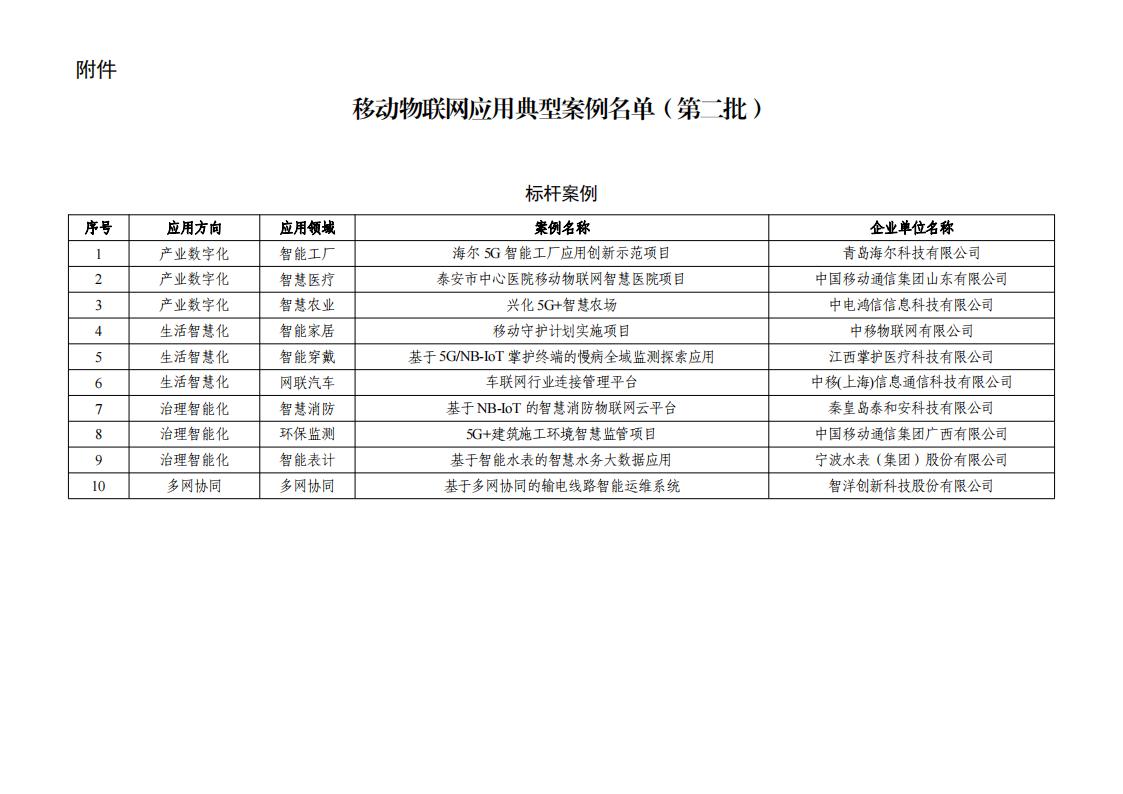 附件:移動(dòng)物聯(lián)網(wǎng)應(yīng)用典型案例名單(第二批)