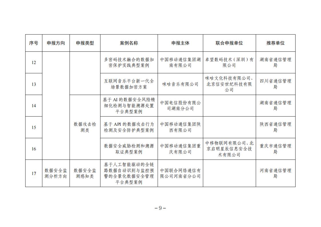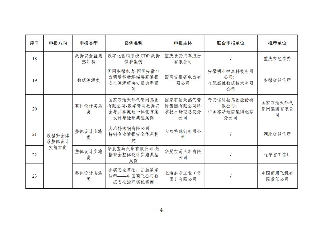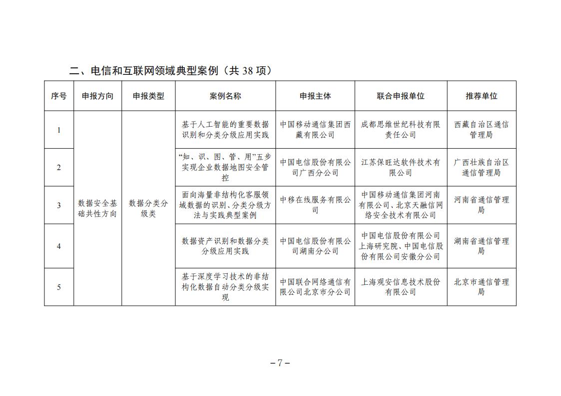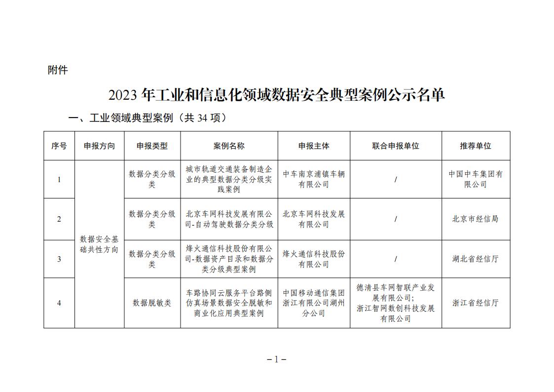 關于2023年工業和信息化領域數據安全典型案例名單的公示