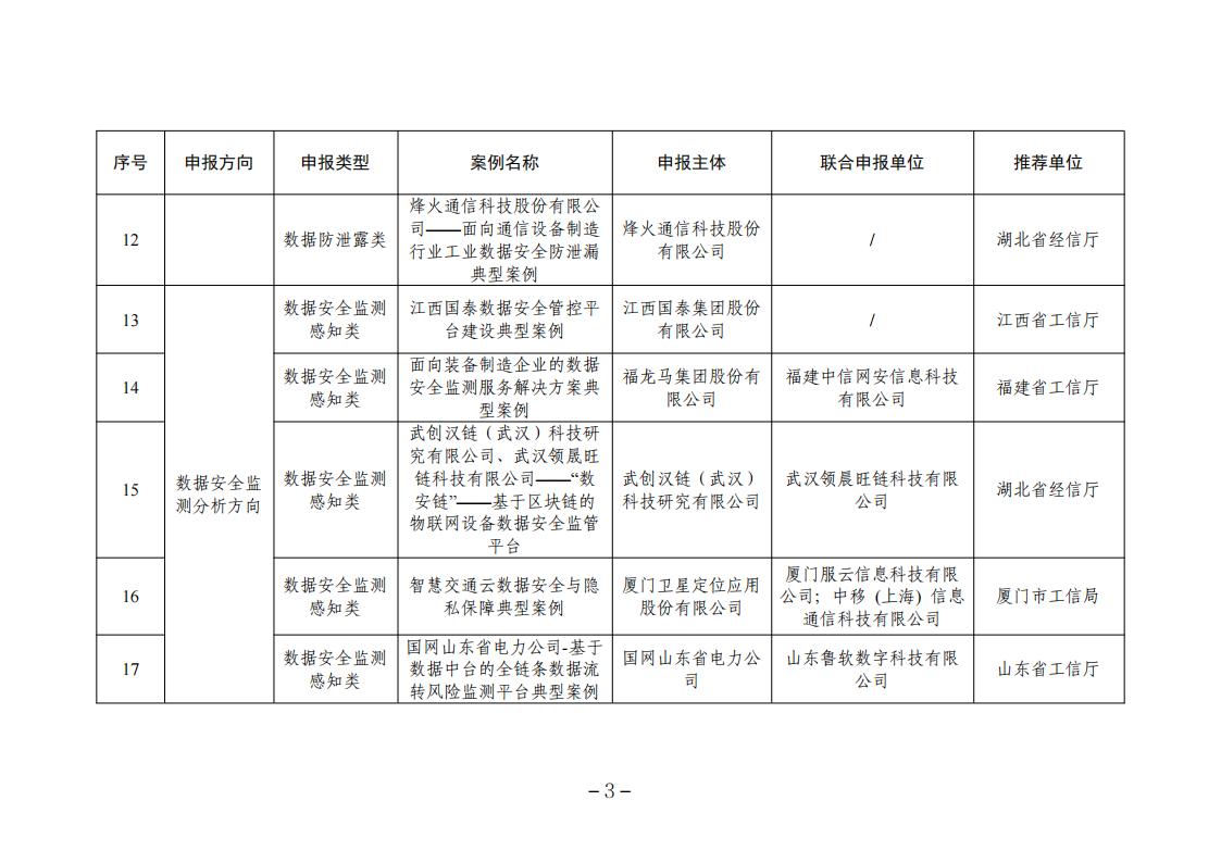 附件:2023年工業和信息化領域數據安全典型案例公示名單
