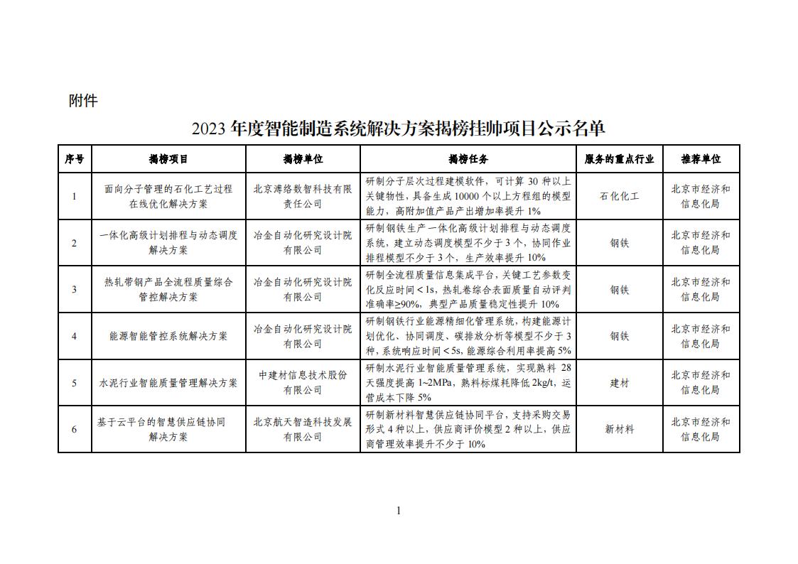 附件:2023年度智能制造系統(tǒng)解決方案揭榜掛帥項(xiàng)目公示名單