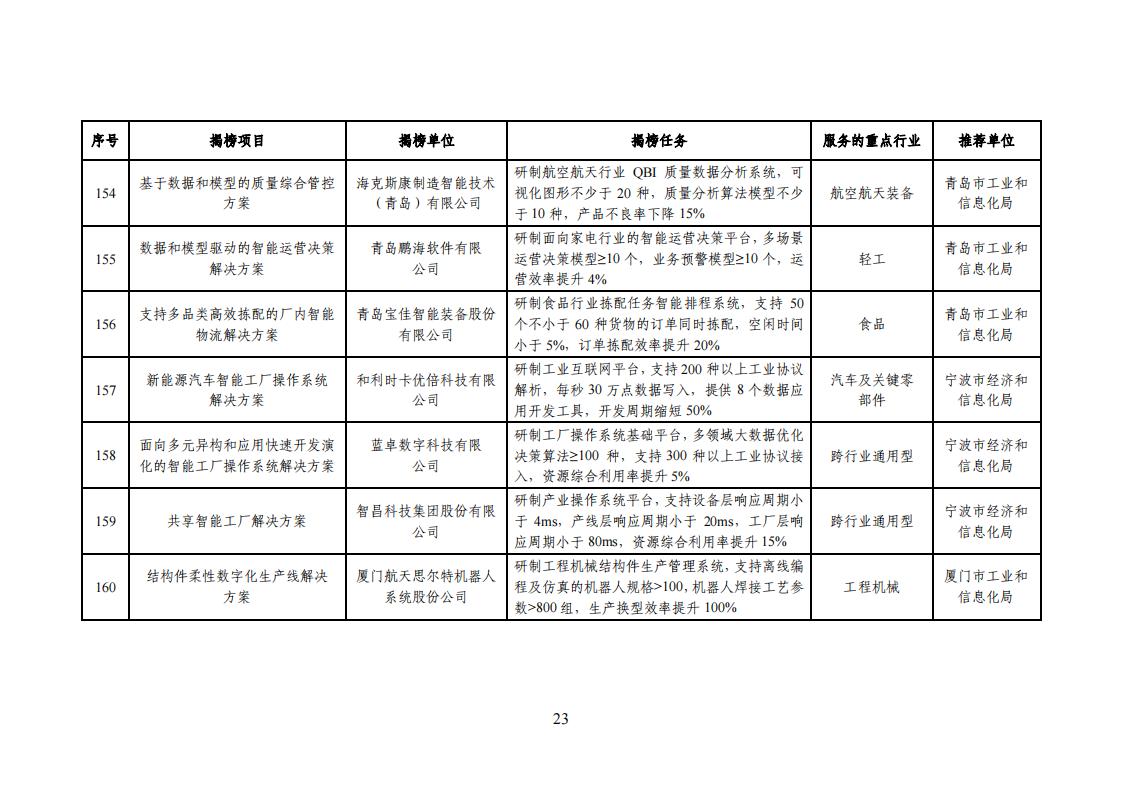 工信部|2023年度智能制造系統(tǒng)解決方案揭榜掛帥項(xiàng)目公示