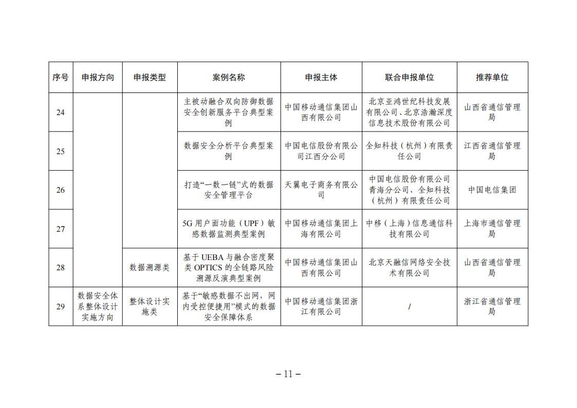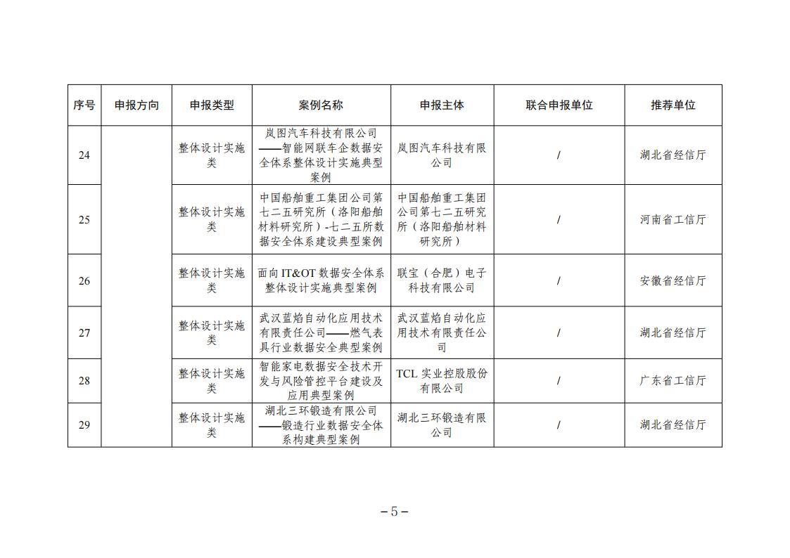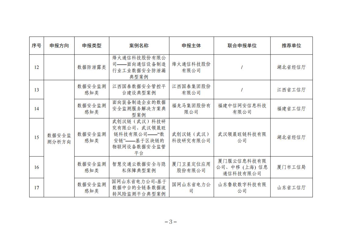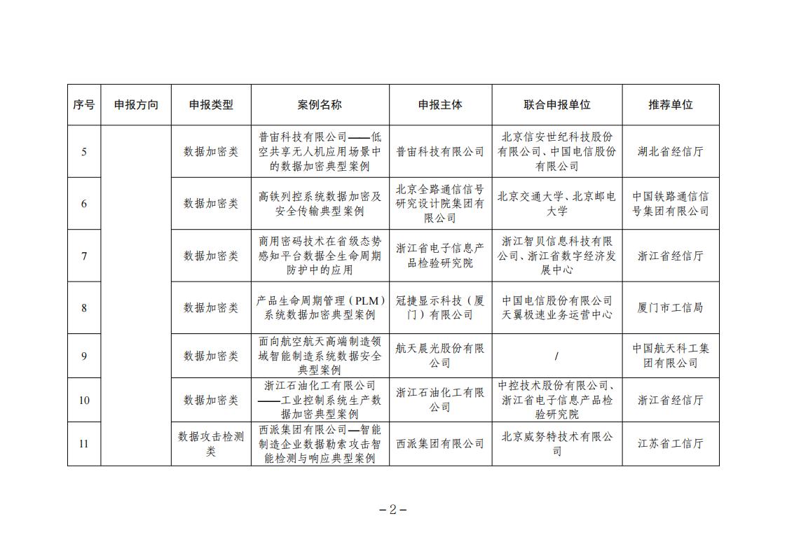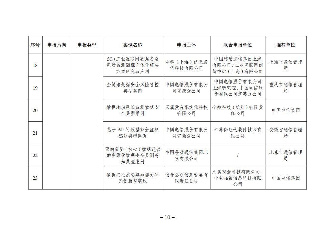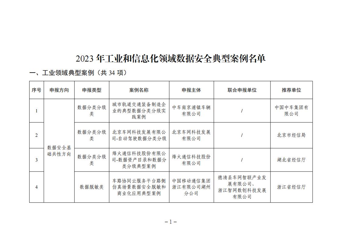 根據《工業和信息化部辦公廳關于組織開展2023年工業和信息化領域數據安全典型案例遴選工作的通知》(工信廳網安函〔2023〕266號),經申報推薦、形式審查、專業初審、專家評審和網上公示,確定了2023年工業和信息化領域數據安全典型案例名單,現予以公布。