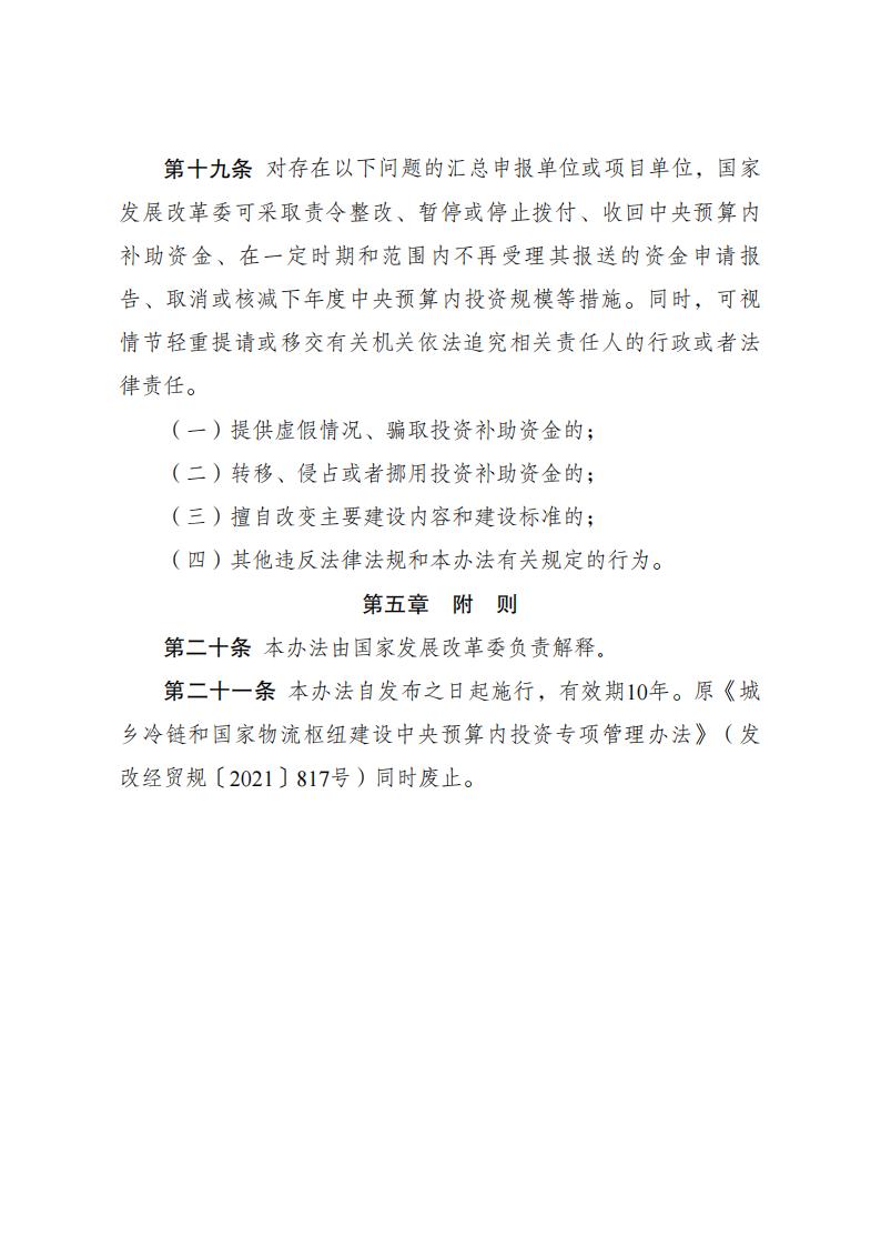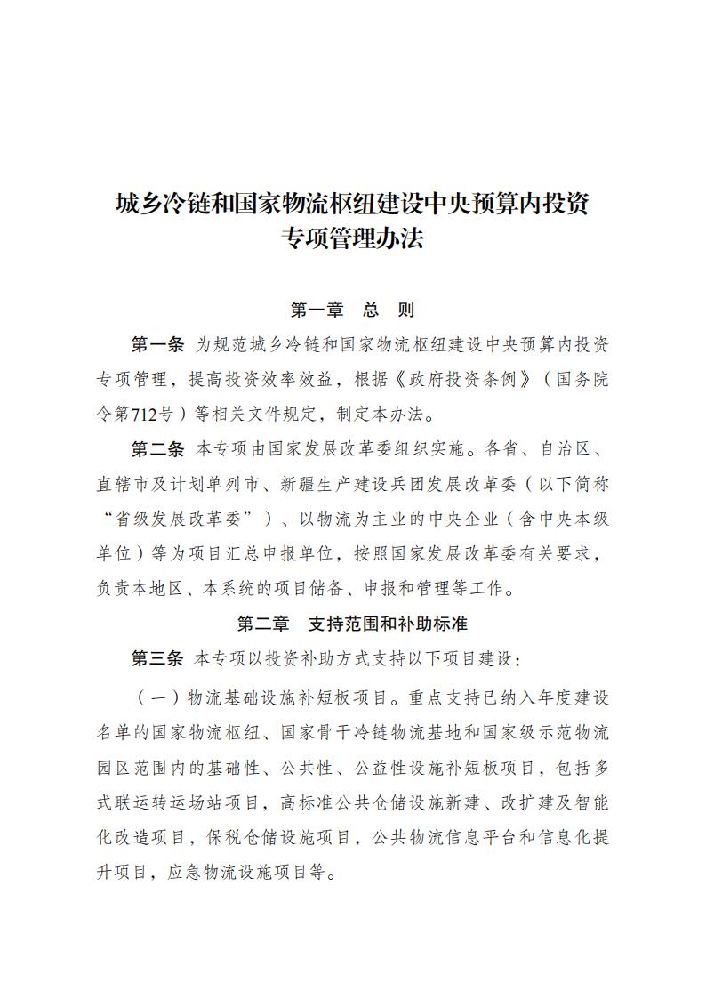 國家發改委|《城鄉冷鏈和國家物流樞紐建設中央預算內投資專項管理辦法》印發