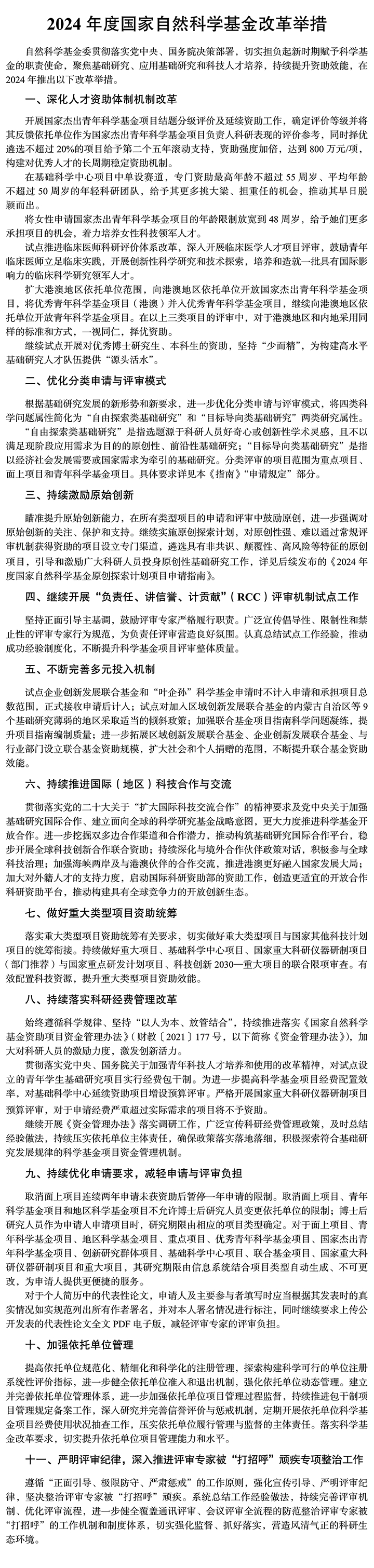 2024年度國家自然科學(xué)基金改革舉措-節(jié)選自《2024年度國家自然科學(xué)基金項(xiàng)目指南》