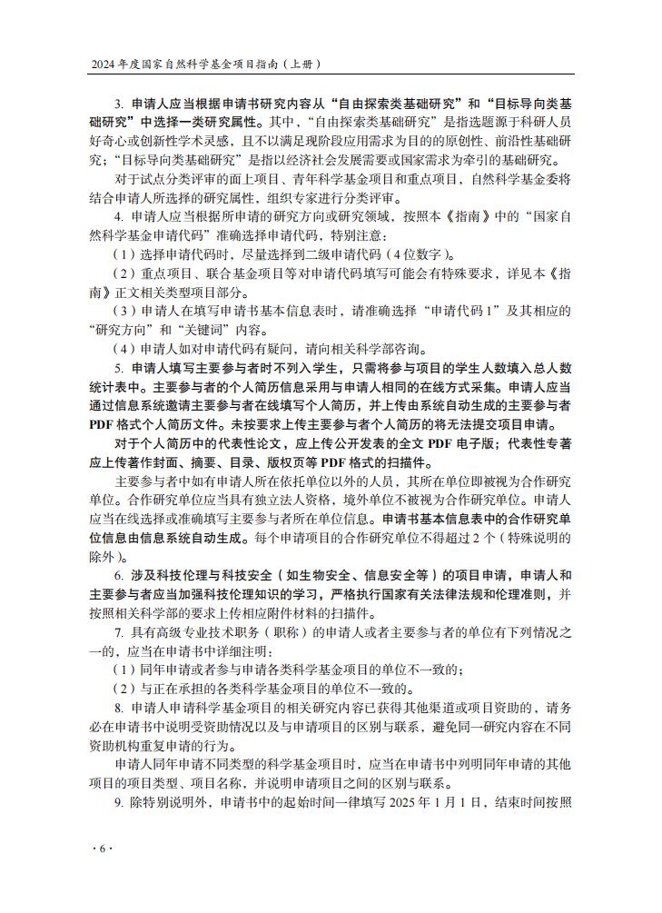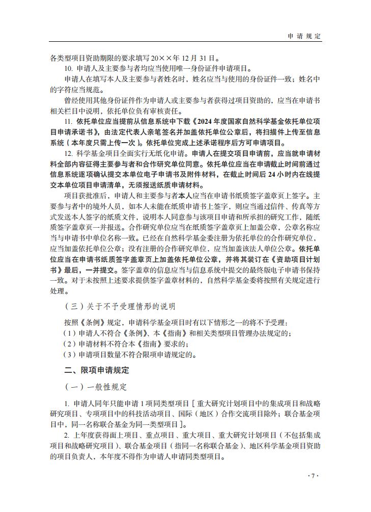 申請(qǐng)規(guī)定-節(jié)選自《2024年度國(guó)家自然科學(xué)基金項(xiàng)目指南》