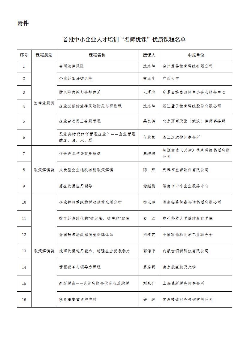 ? ? ? ? 附件:首批中小企業人才培訓“名師優課”優質課程名單