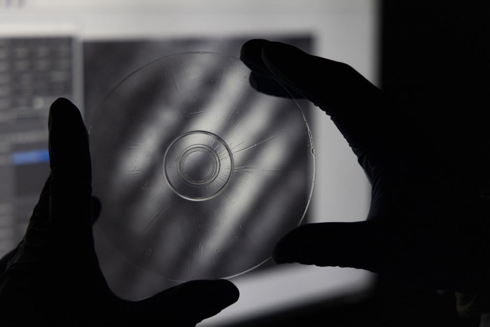 2024年2月29日在上海光機(jī)所光學(xué)實驗室拍攝的“超級光盤”。2月21日,中國科學(xué)院上海光學(xué)精密機(jī)械研究所對外宣布存儲容量是普通光盤上萬倍、普通硬盤上百倍的“超級光盤”誕生。據(jù)計算,十幾張“超級光盤”就可以存儲下整個國家圖書館的數(shù)據(jù)量。