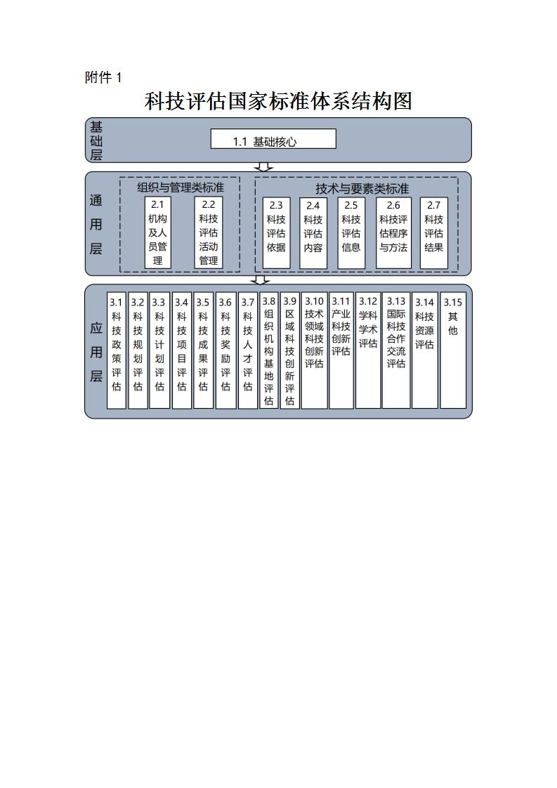 申報項目應圍繞科技評估領域標準化發展需求,促進科技評估高質量發展,堅持目標導向、問題導向,控制數量、確保質量,滿足合法性、必要性、可行性、協調性等要求。申報項目應屬于科技評估領域,包括科技政策評估、科技計劃評估、科技項目評估、科技成果評估、區域科技創新評估、科技機構與基地評估、科技人才評估、科技經費評估、科技績效與影響評估等,參見科技評估國家標準體系結構圖(見附件1)。本年度重點是科技評估通用層及熱點急需應用層標準。