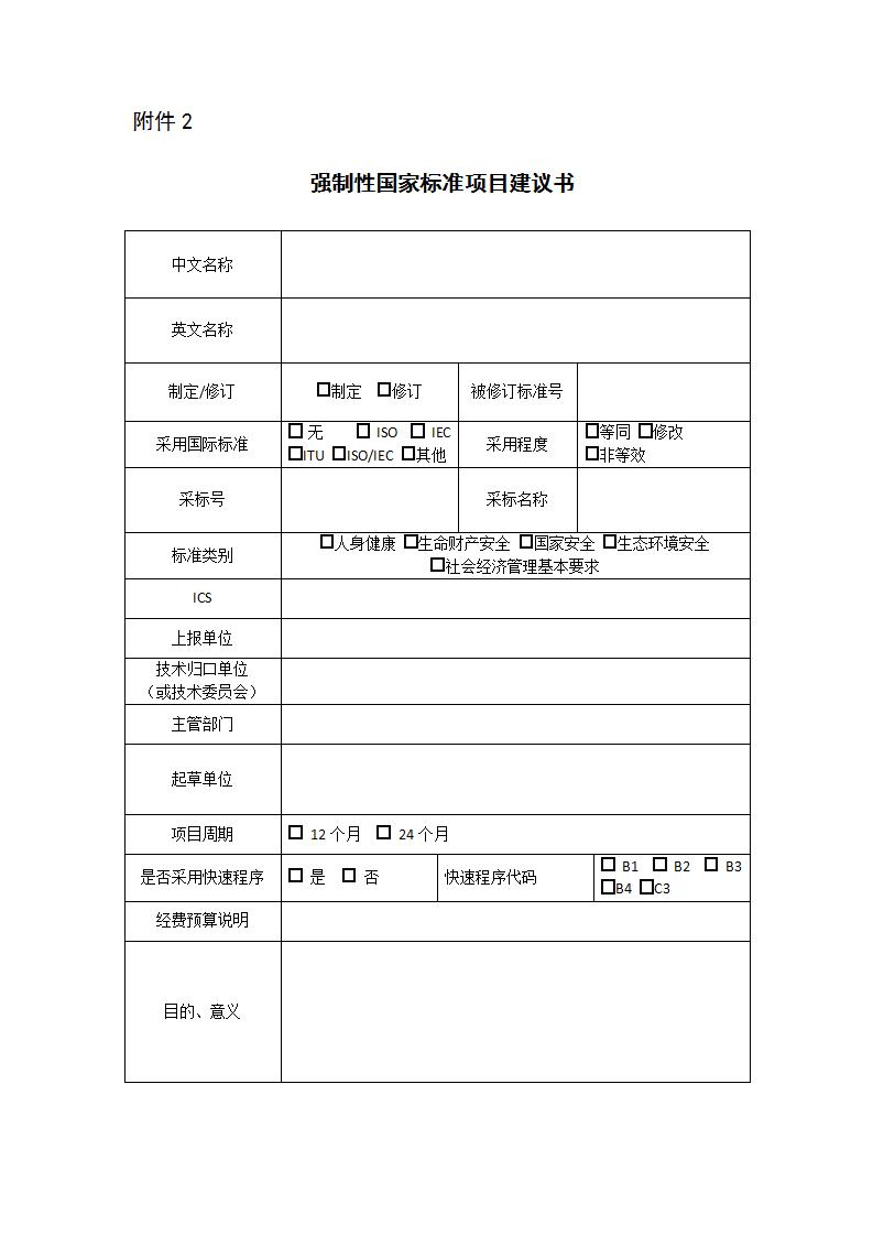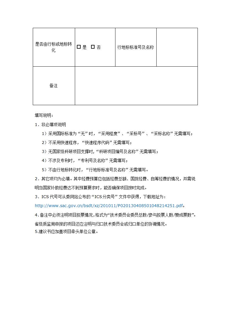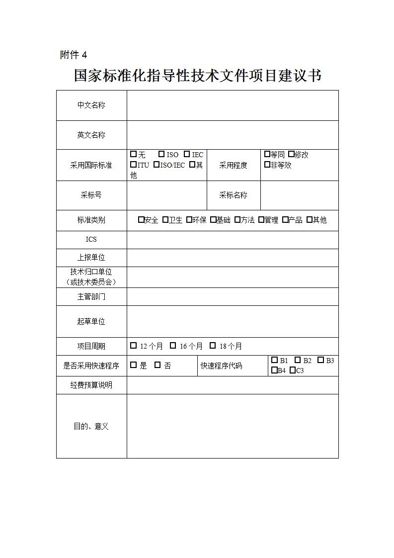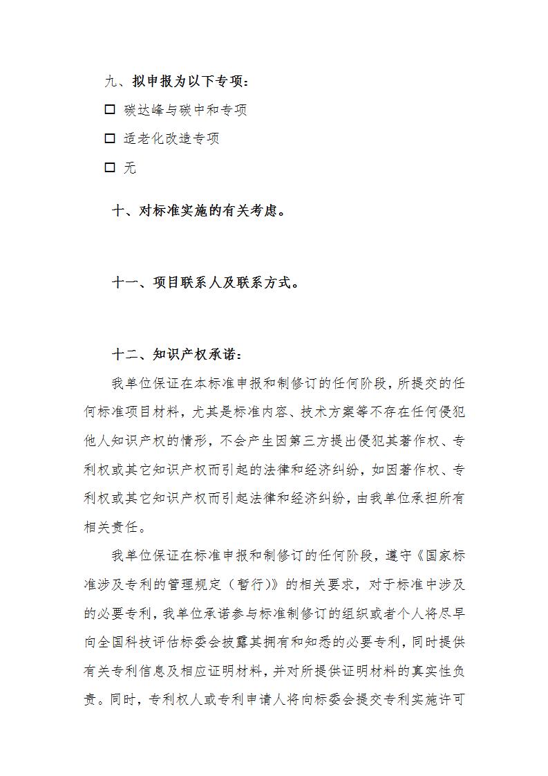 3.項目申報說明(內容提綱見附件5)。應加蓋項目牽頭單位公章,并明確標準與科技評估國家標準體系的對應關系、標準與國內外已發布和在研相關標準的關系、相關工作基礎、是否同步制定國際標準或國家標準外文版、對標準實施的有關考慮、知識產權承諾等。