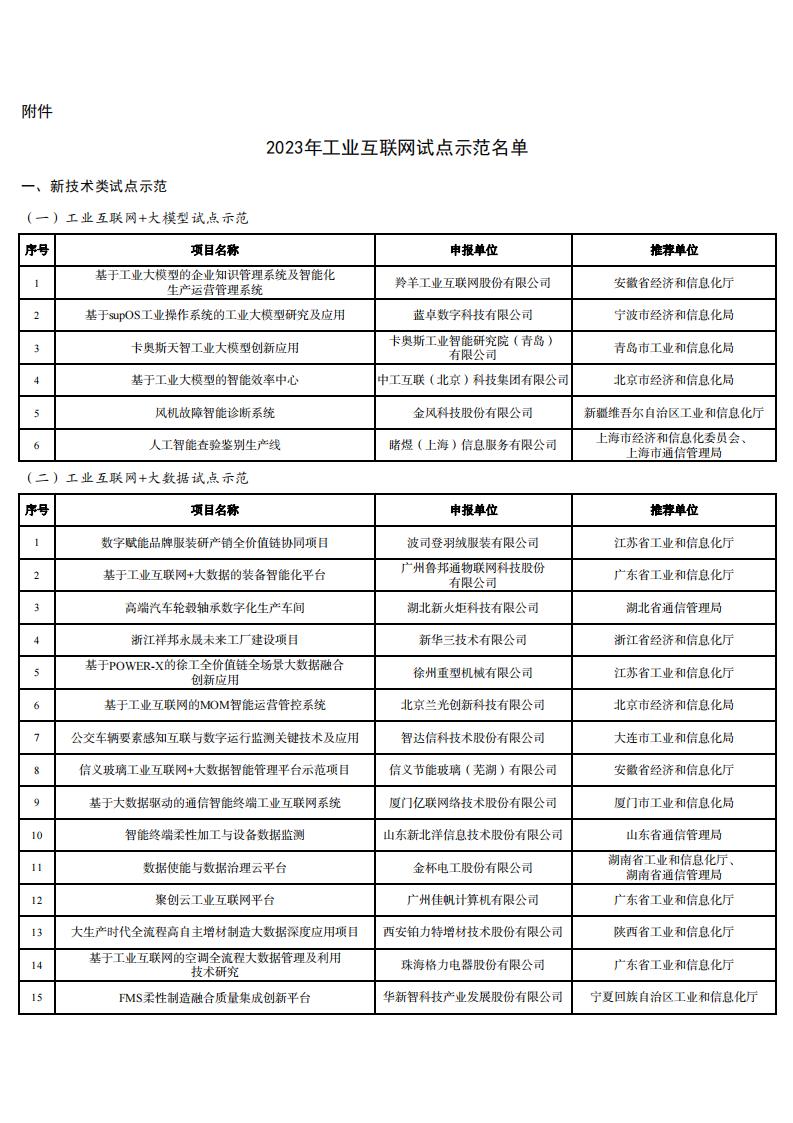 工信部|關于公布2023年工業互聯網試點示范項目名單的通知