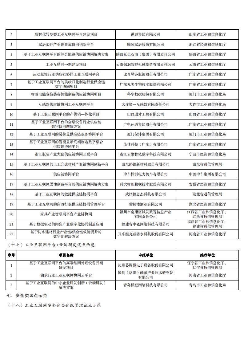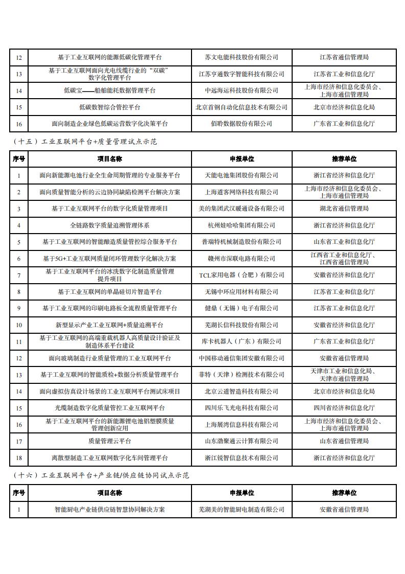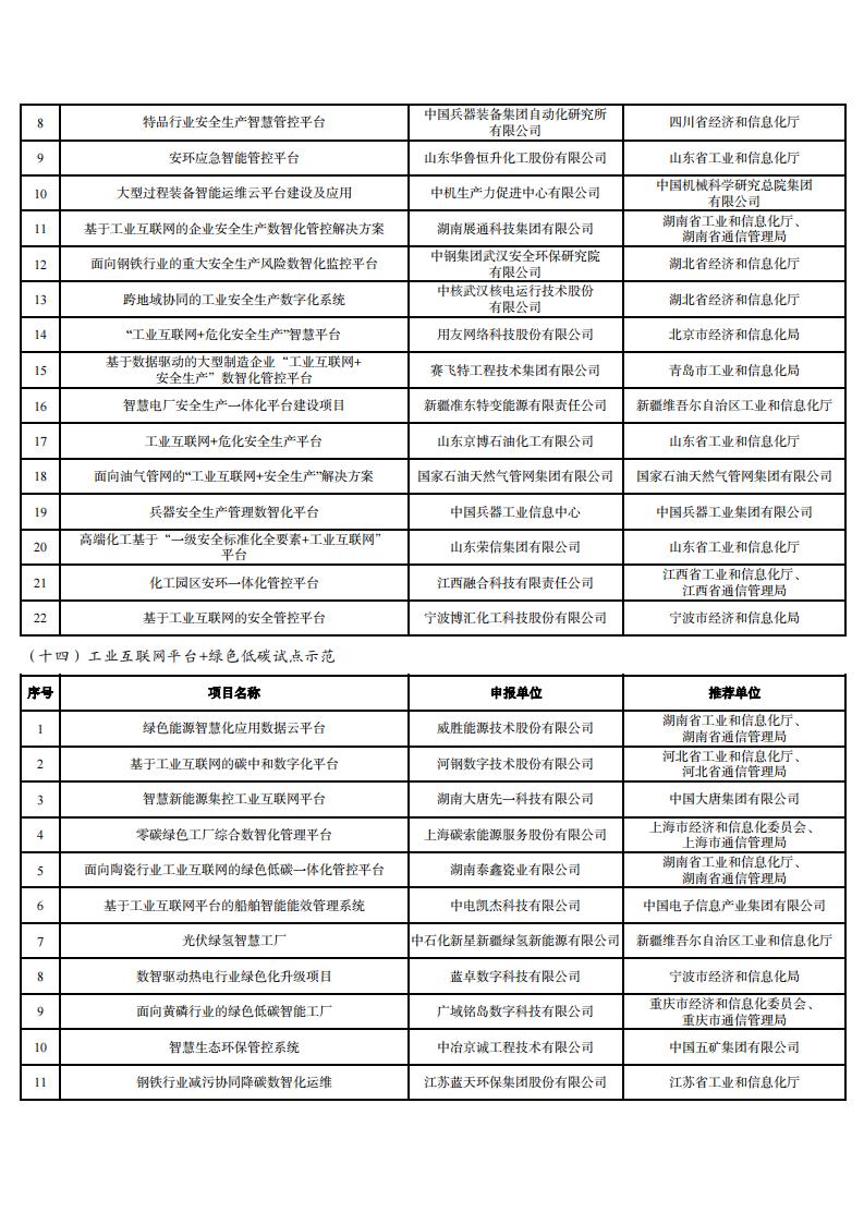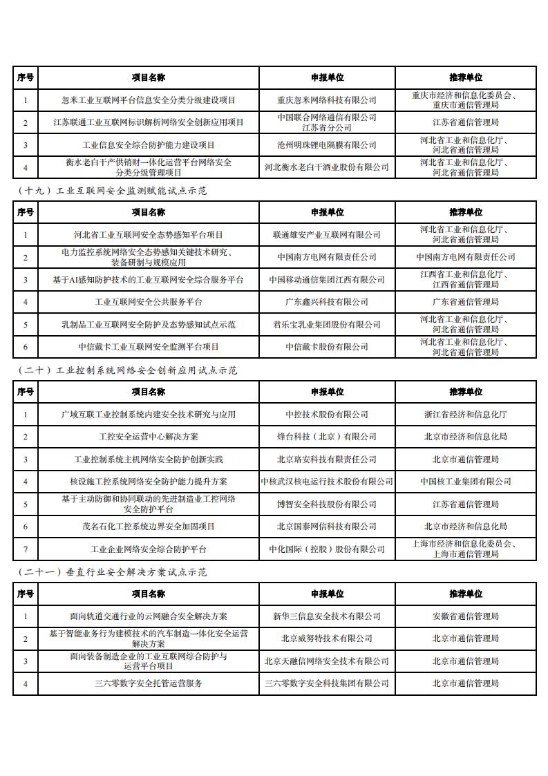 根據《工業和信息化部辦公廳關于組織開展2023年工業互聯網試點示范項目申報工作的通知》(工信廳信管函〔2023〕319號)要求,經企業自主申報、地方推薦、專家評審和網上公示,確定了 2023 年工業互聯網試點示范項目名單,現予以公布。