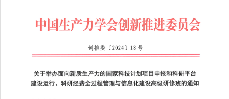 關于舉辦面向新質生產力的國家科技計劃項目申報和科研平臺建設運行、科研經費全過程管理與信息化建設高級研修班的通知