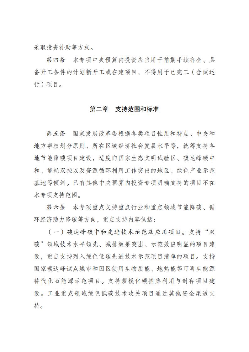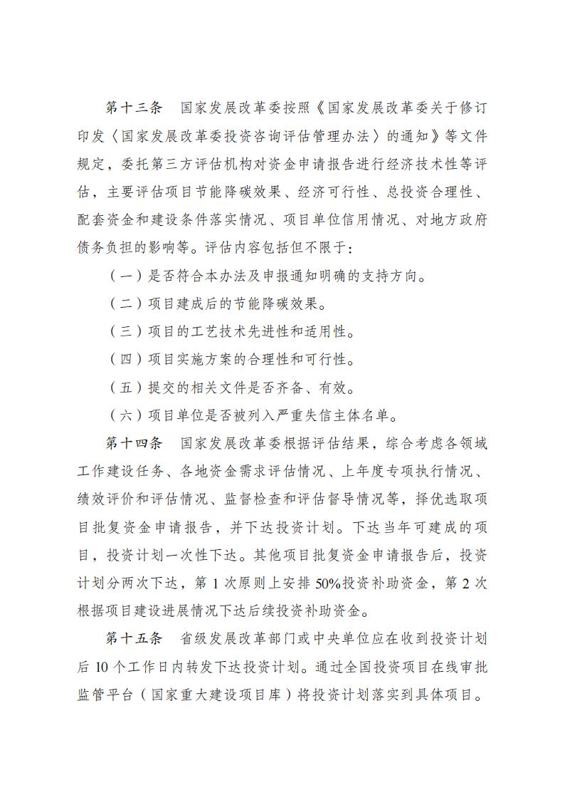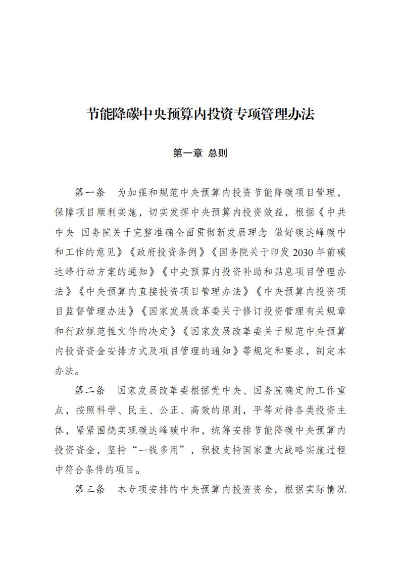 國家發(fā)展改革委關(guān)于印發(fā)《節(jié)能降碳中央預(yù)算內(nèi)投資專項管理辦法》的通知