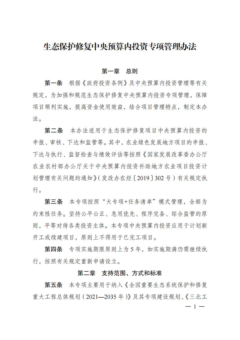 國家發(fā)改委|關(guān)于印發(fā)生態(tài)保護(hù)修復(fù)中央預(yù)算內(nèi)投資專項(xiàng)管理辦法的通知