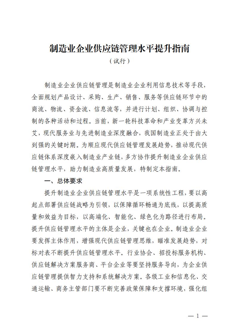 三部門關于印發《制造業企業供應鏈管理水平提升指南(試行)》的通知