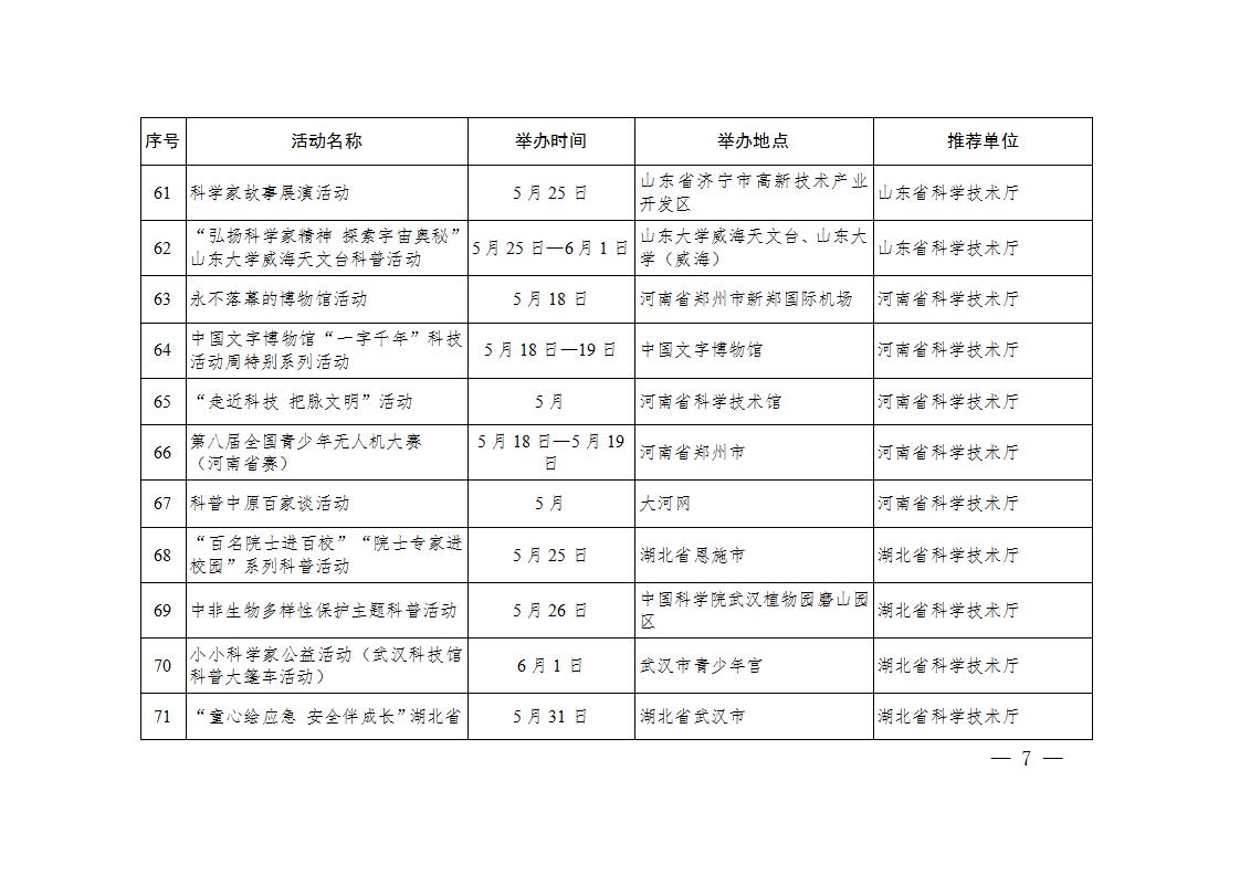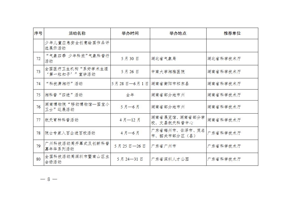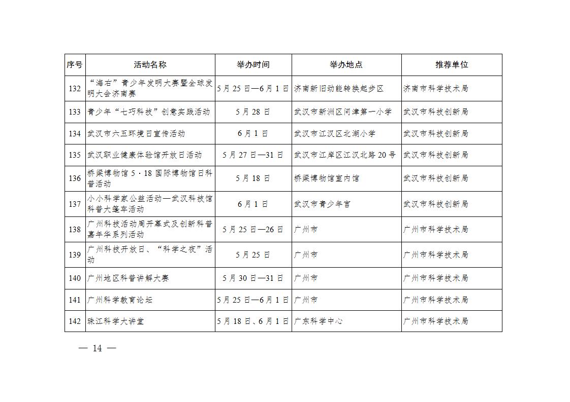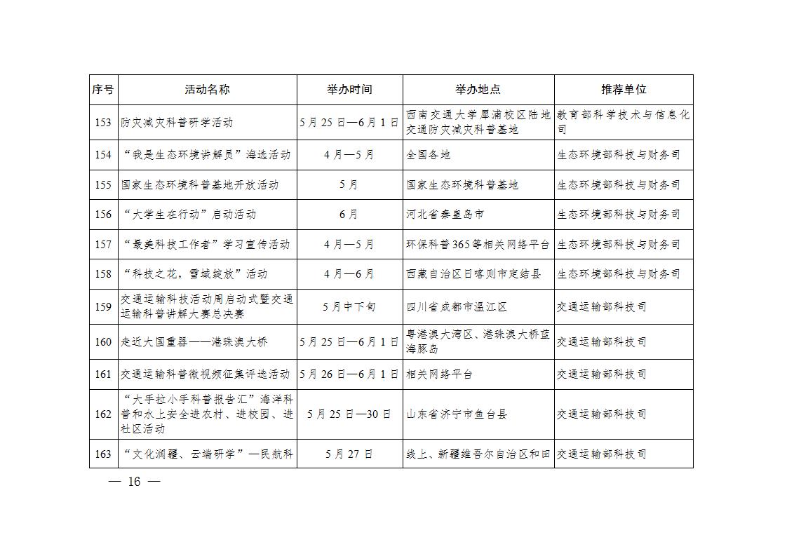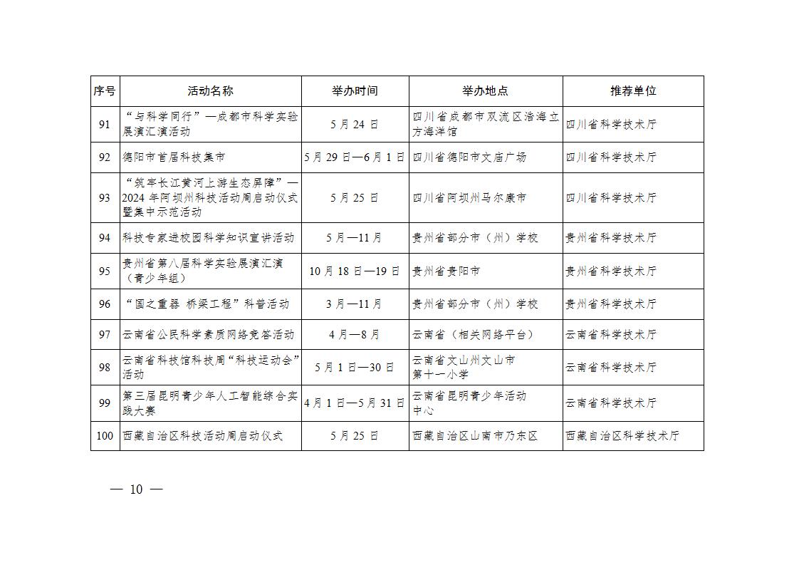 科技部辦公廳關于印發2024年全國科技活動周重大示范活動清單、輪值主場活動清單、特色群眾性科技活動清單的通知