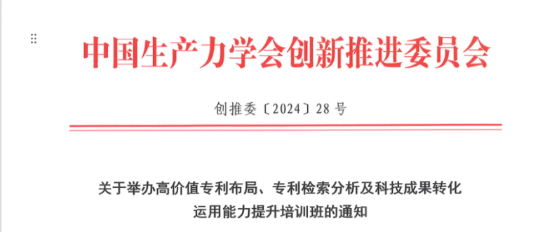? ? ? 為進一步提升專利質量和專利轉化運用,中國生產力學會創新推進委員會定于2024年7月17日—20日在貴陽、8月14日—17日在蘇州舉辦高價值專利布局、專利檢索分析及科技成果轉化運用能力提升培訓班。