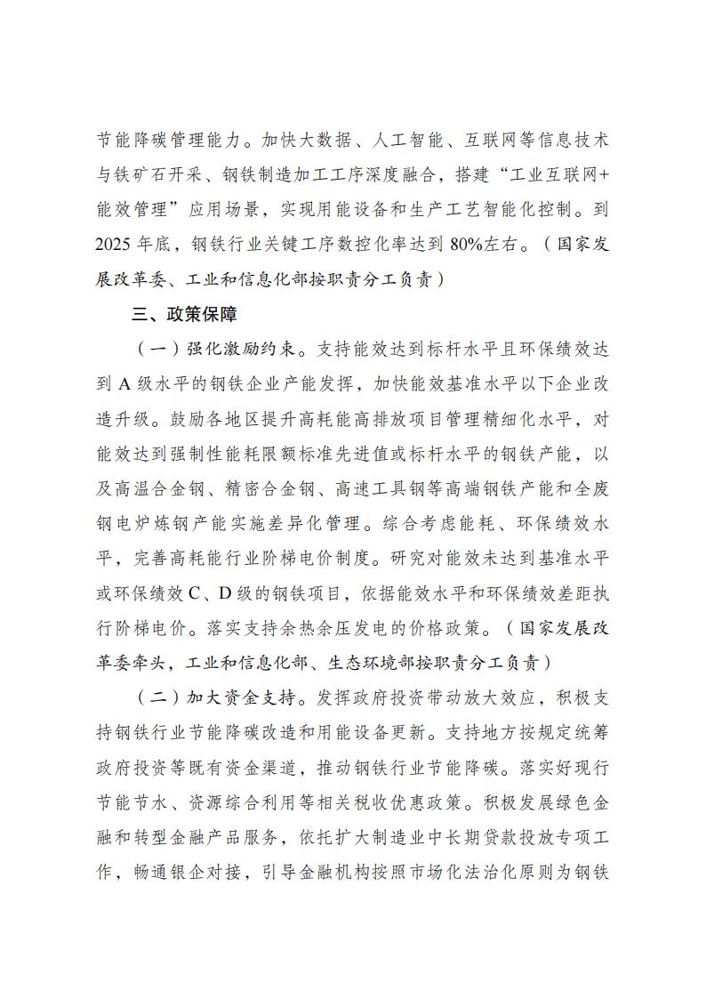 ?為全面貫徹黨的二十大精神,認真落實黨中央、國務院決策部署,實施全面節約戰略,加大節能降碳工作力度,深入推進鋼鐵行業節能降碳改造和用能設備更新,支撐完成“十四五”能耗強度降低約束性指標,國家發展改革委、工業和信息化部、生態環境部、市場監管總局、國家能源局等部門制定了《鋼鐵行業節能降碳專項行動計劃》。現印發給你們,請認真抓好落實。