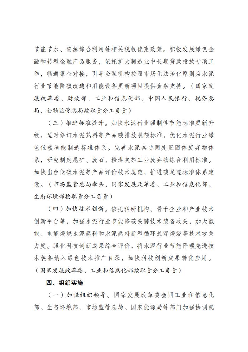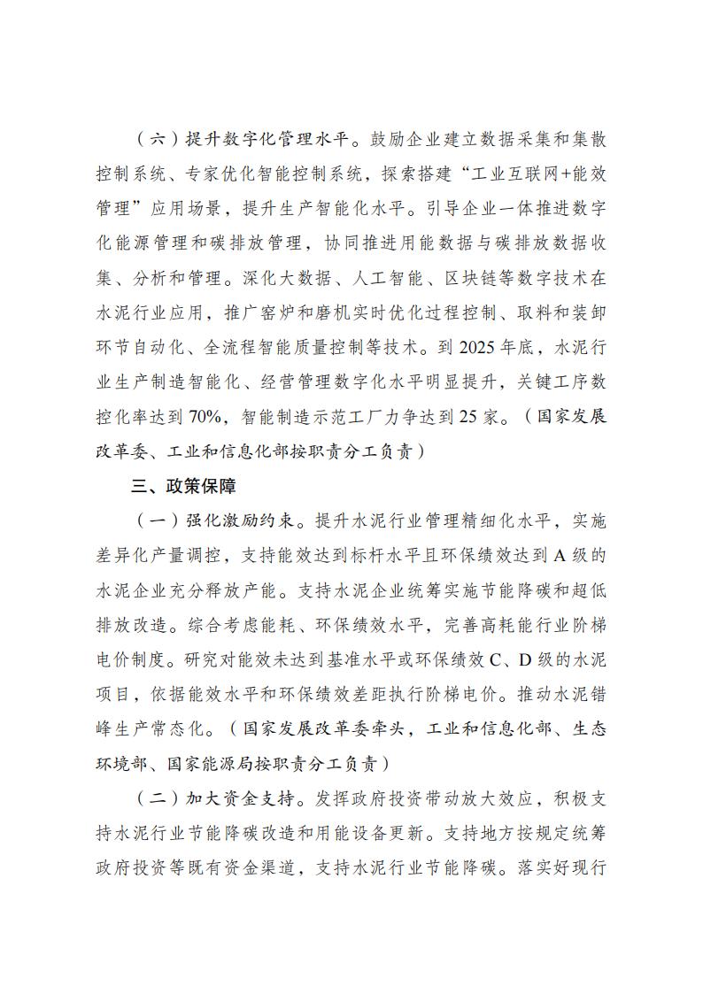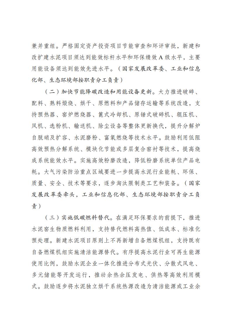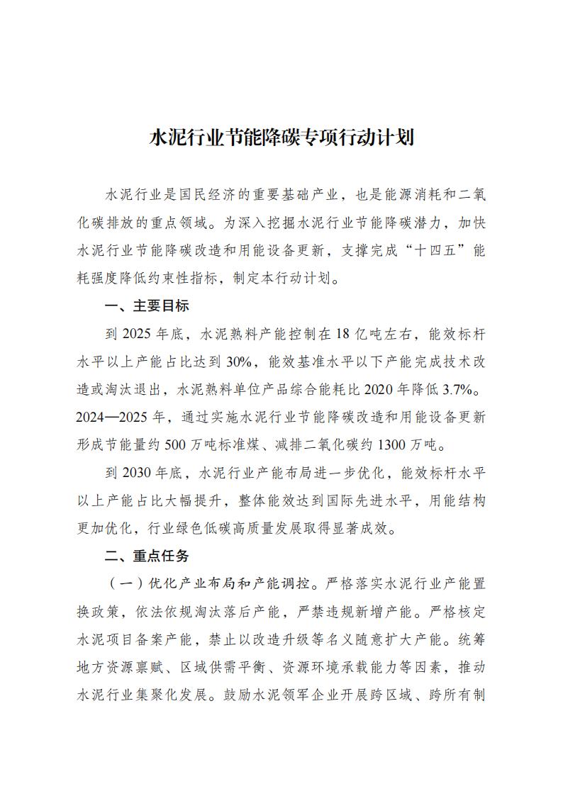 國家發(fā)改委等五部門關于印發(fā) 《水泥行業(yè)節(jié)能降碳專項行動計劃》的通知