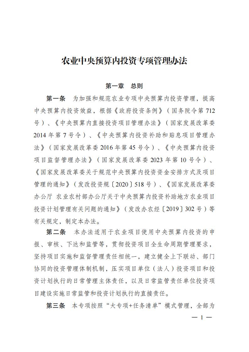 國家發改委|關于印發農業中央預算內投資專項管理辦法的通知