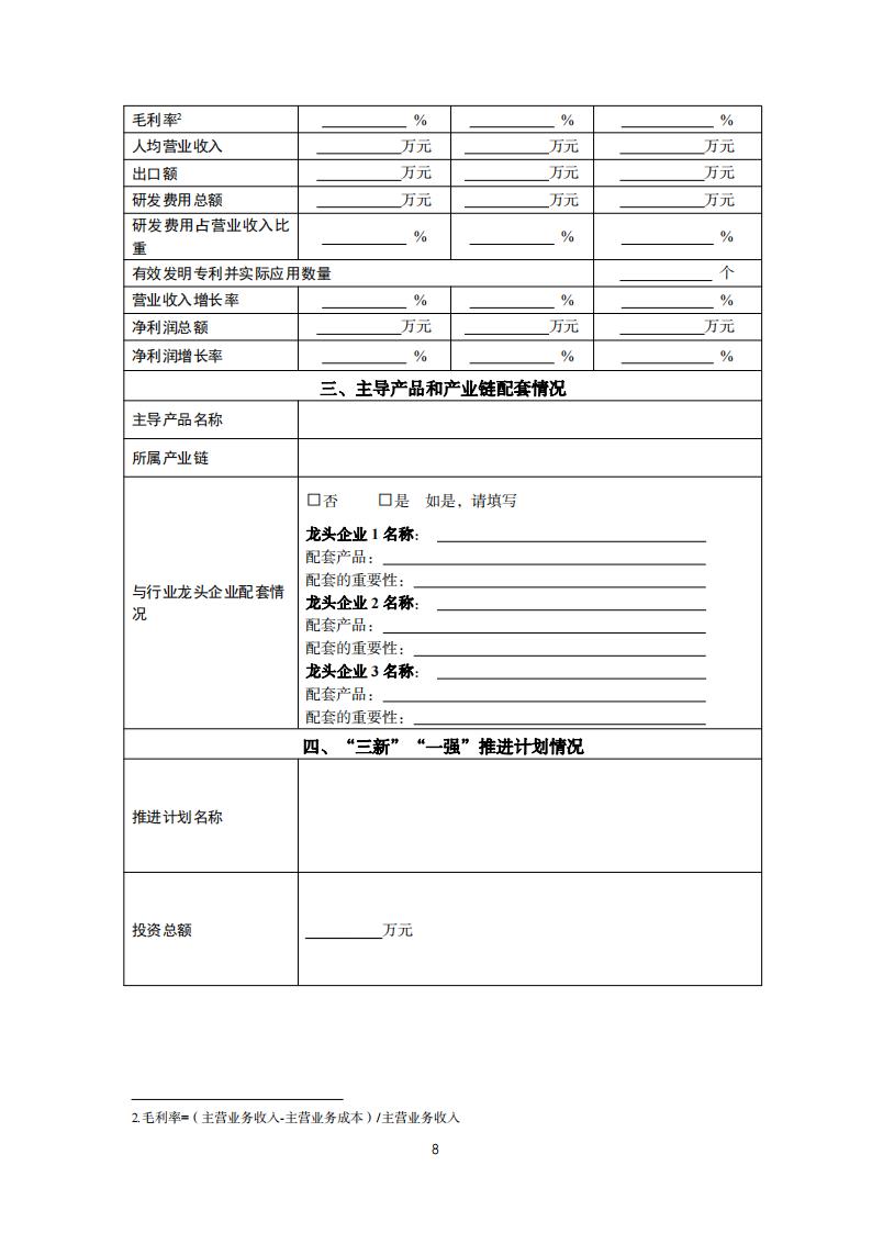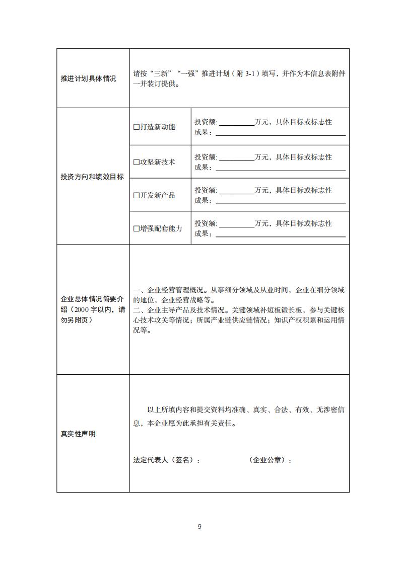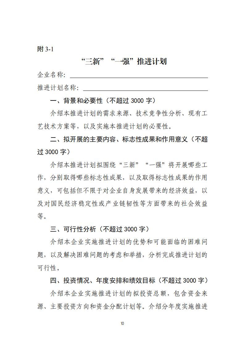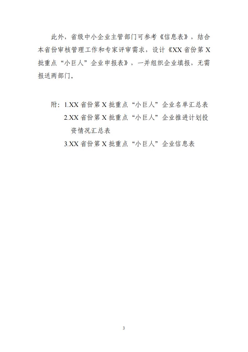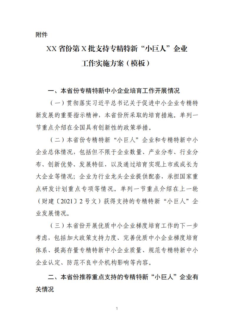 (三)編報(bào)方案。各省級中小企業(yè)主管部門會(huì)同財(cái)政部門,統(tǒng)一編制《XX省份第X批支持專精特新“小巨人”企業(yè)工作實(shí)施方案》(以下稱《實(shí)施方案》,模板詳見附件)。按程序?qū)ⅰ秾?shí)施方案》聯(lián)合上報(bào)兩部門。相關(guān)佐證材料留存?zhèn)洳椤?/p>
