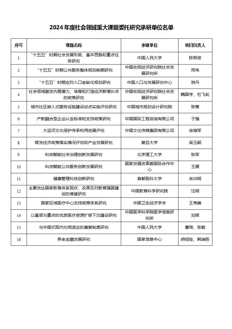 關(guān)于確定2024年度社會(huì)領(lǐng)域重大課題委托研究承研單位的公告
