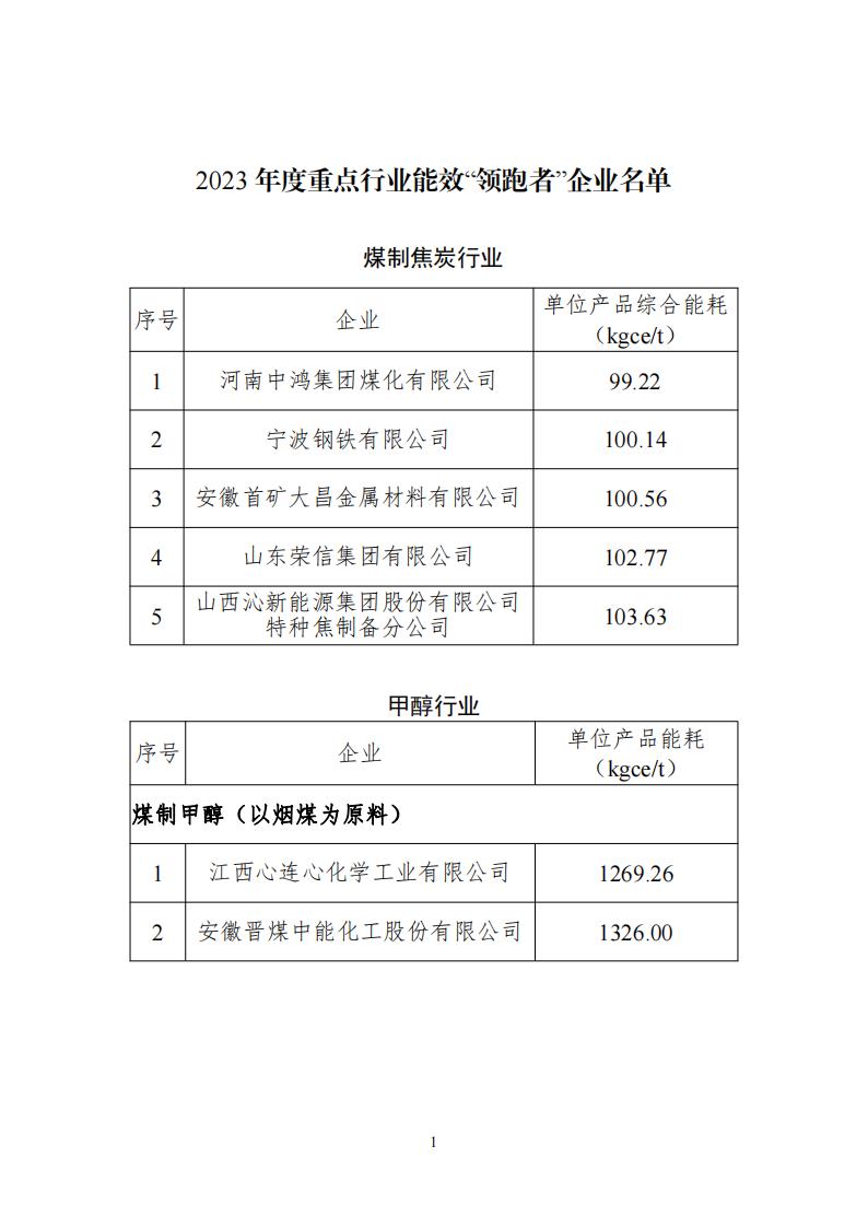 ? ? ?按照《工業和信息化部辦公廳 國家發展改革委辦公廳 市場監管總局辦公廳關于組織開展2023年度重點行業能效“領跑者”企業遴選工作的通知》(工信廳聯節函〔2023〕348號)要求,經地方推薦、專家評審、社會公示等程序,現將煤制焦炭,甲醇,煤制烯烴,燒堿,純堿,乙烯,對二甲苯,乙二醇,黃磷,合成氨,尿素,磷酸一銨,磷酸二銨,鈦白粉,聚氯乙烯,精對苯二甲酸,子午線輪胎,鋼鐵,銅冶煉,鉛冶煉,鋅冶煉,電解鋁,氧化鋁,水泥熟料,平板玻璃,建筑陶瓷,衛生陶瓷,衛生紙原紙、紙巾原紙,棉、化纖及混紡機織物,針織物、紗線等30個行業能效“領跑者”企業名單予以公告。