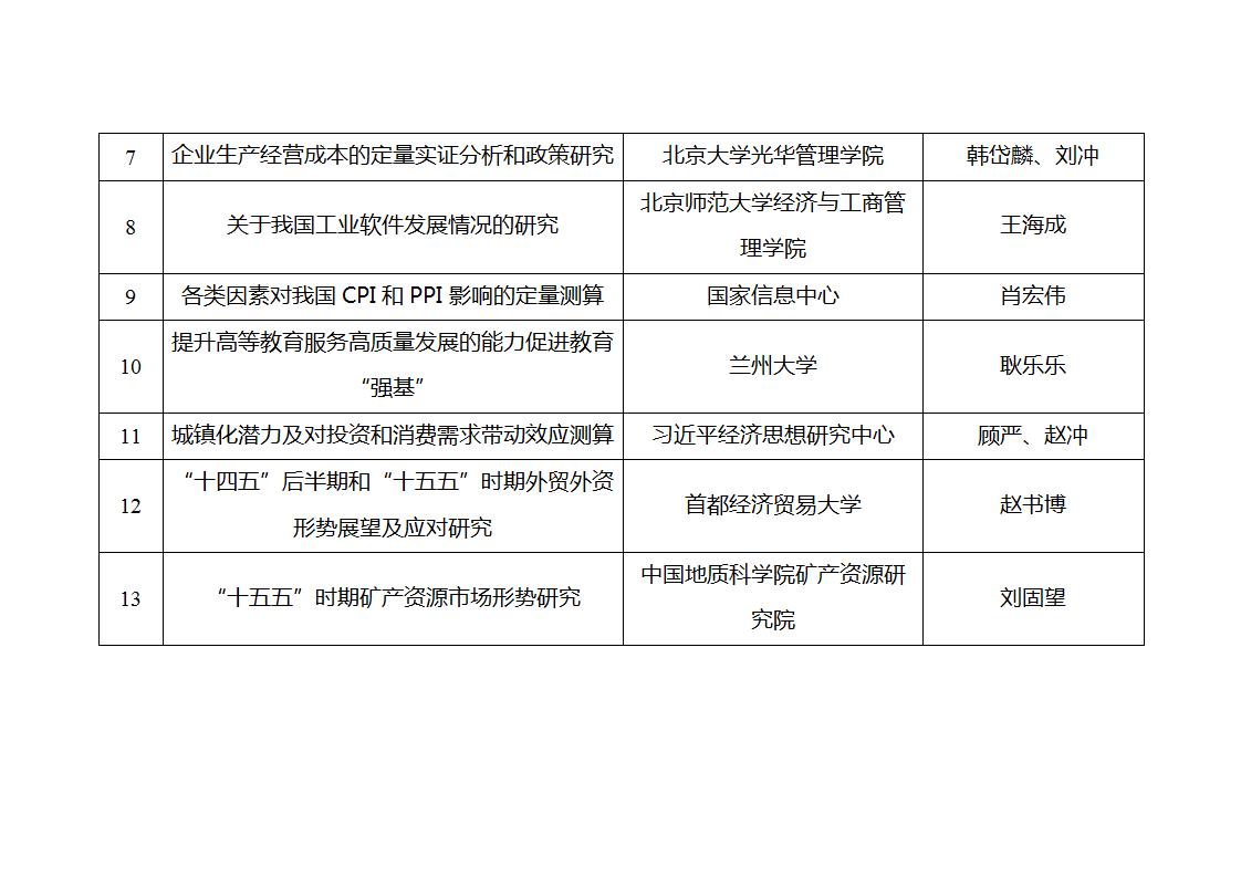 附件:國家發展改革委國民經濟綜合司2024年度研究課題入選單位名單
