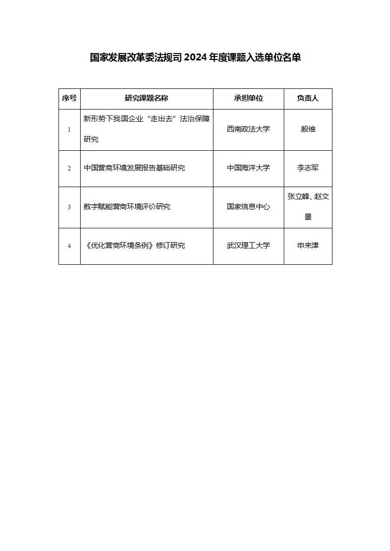 國家發改委法規司關于2024年度研究課題入選單位的公告
