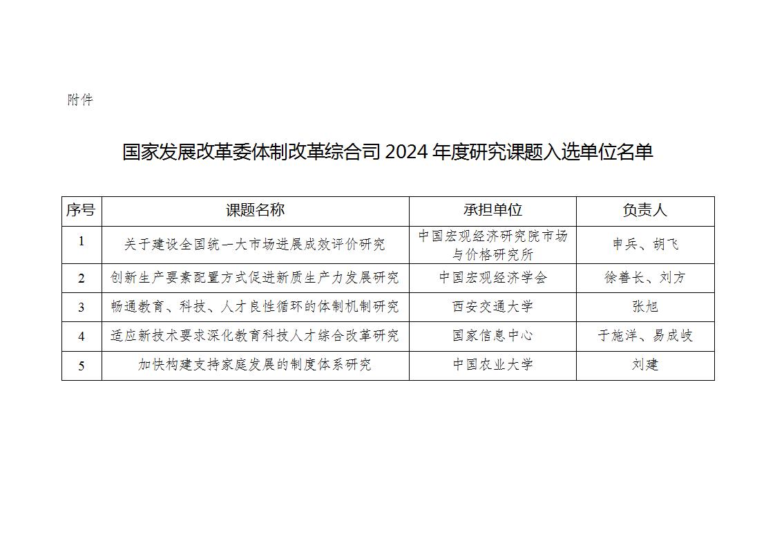 附件:國(guó)家發(fā)展改革委體制改革綜合司2024年度研究課題入選單位名單